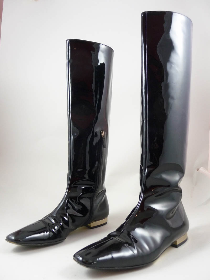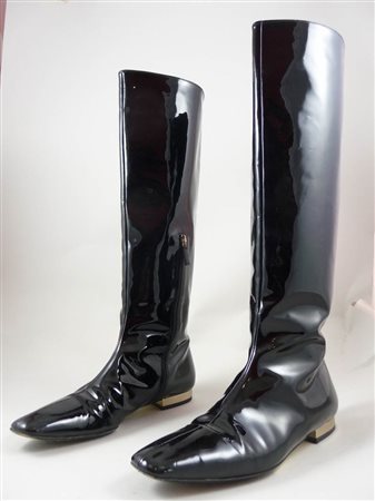 STIVALI IN VERNICE NERA - VARNISH BOOTS Gucci tacco dorato, risvolto interno dorato, lievi difetti tg 38