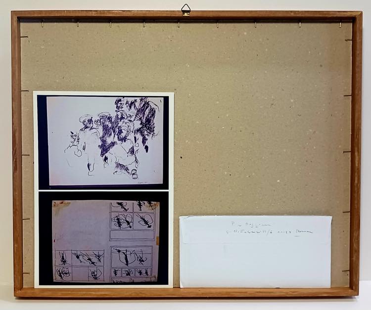 Pino Reggiani (Forlì 1937 - Roma 2022). Senza titolo, 1963. Cm. 40x49,5. In cornice cm. 45x52. China su carta. Firmata e datata in basso a destra Reggiani 1963. Al verso due disegni. Cornice coeva in noce.