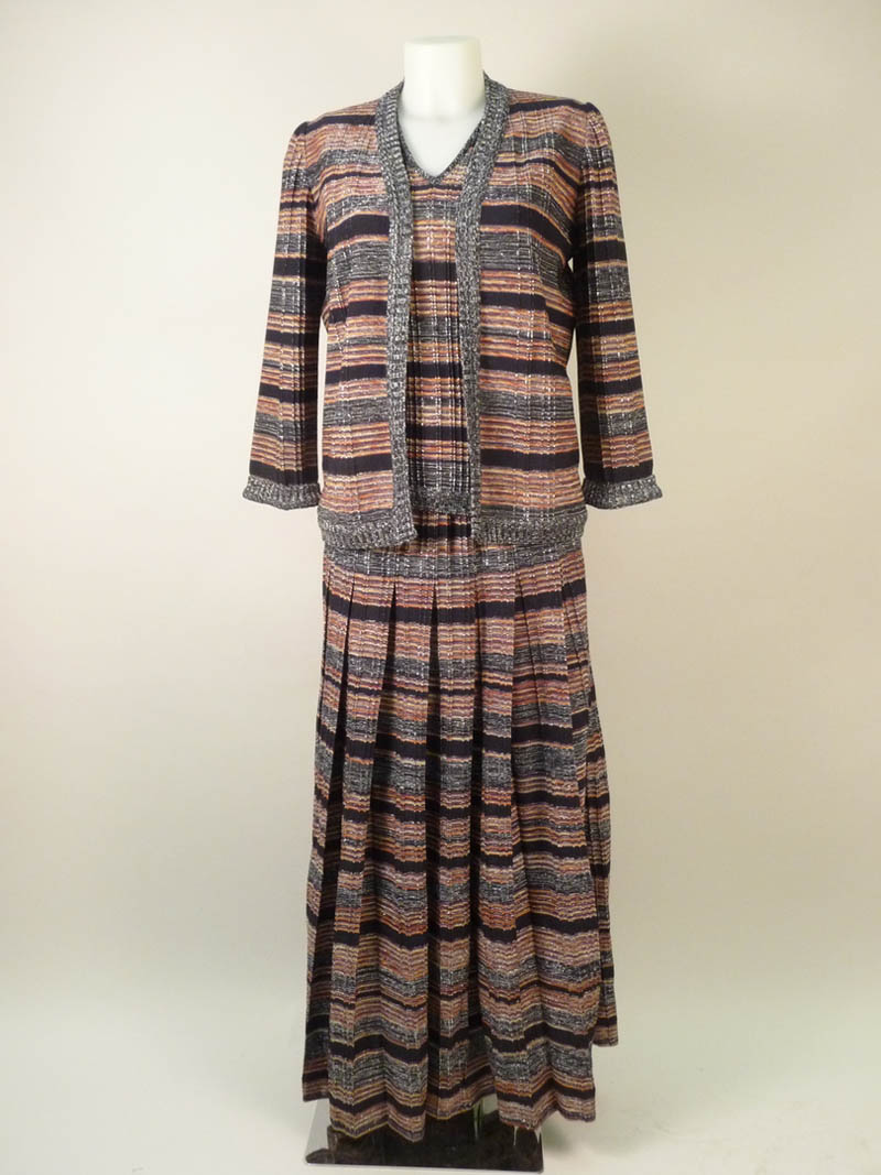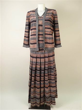 COMPOSÈ IN TESSUTO LAMÈ - LAMÈ COMPOSÈ Louis Feraud Paris composto da gonna plissettatasvasata, canottiera e cardigan nei toni del blu e del bordeaux tg 42