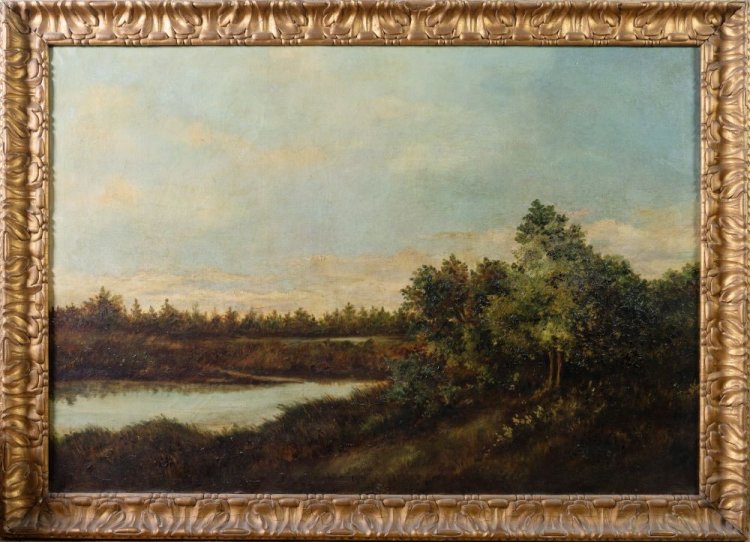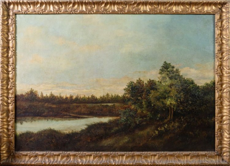 Lot 172 | Pittore tra XIX e XX secolo. Paesaggio lacustre con alberi.