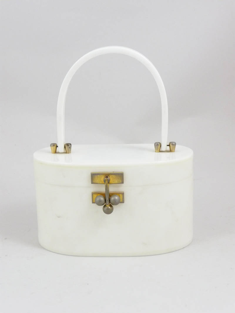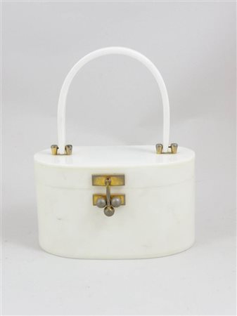 BORSETTA IN LUCITE BIANCA - PURSE IN WHITE LUCITE USA, Myles Originals, Anni Cinquanta chiusura a sfere in metallo dorato, lievi difetti