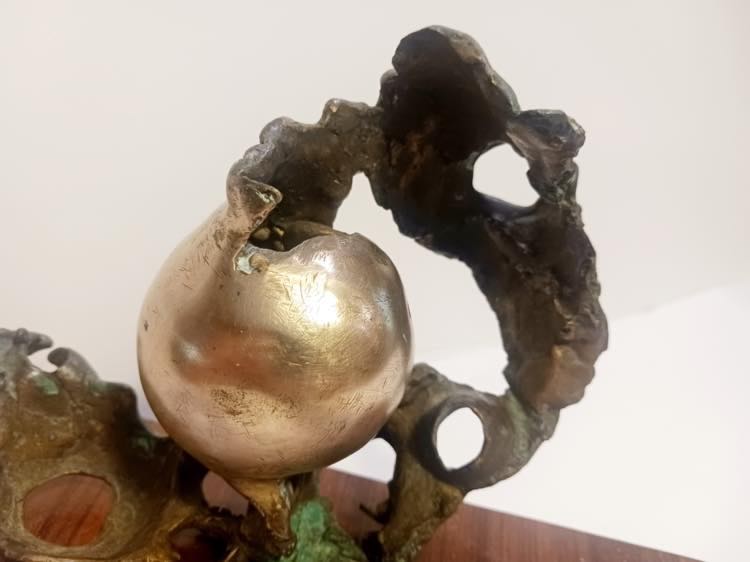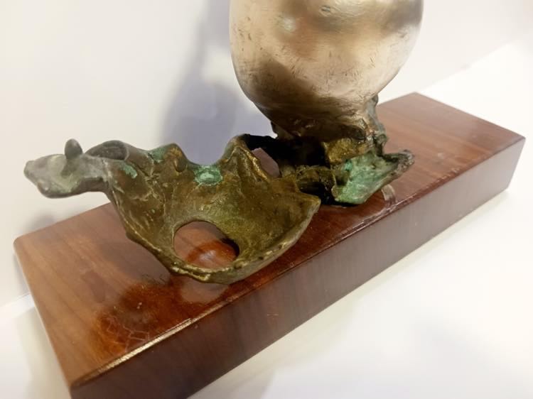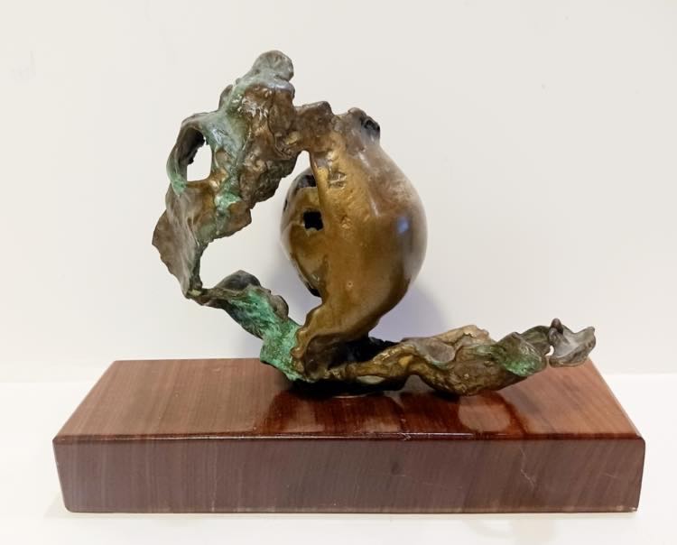 Giorgio Bagnoli (Volterra 1925). Senza titolo, anni '60. Cm. 14x17. Scultura in bronzo su base in legno. Firmata alla base BAGNOLI.