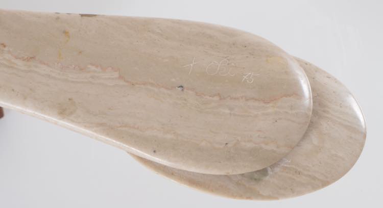Tatsumi Oki (1948 - Carrara 2001). Fossile. Cm. 9x73x29. Scultura mobile in marmo.