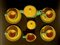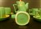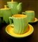 Massimo Iosa Ghini per Naj-Oleari. Servizio da tè e caffè, 1985. In ceramica nei toni del colore verde menta all'esterno e del giallo dorato all'interno. Composto da 4 tazze alte con 4 piattini, una teiera, una lattiera e una zuccheriera.
