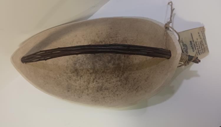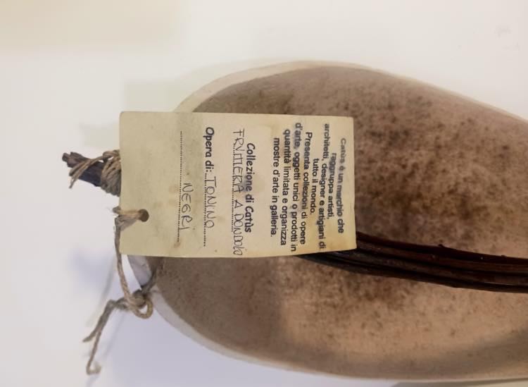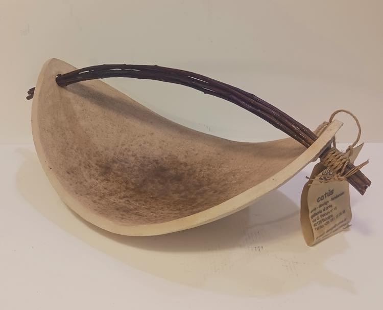 Tonino Negri (Lodi 1961). Fruttiera a dondolo, primi anni 2000. Cm. 15x45x23. Scultura in gres. Certificato di autenticità Galleria Catùs Bologna.
