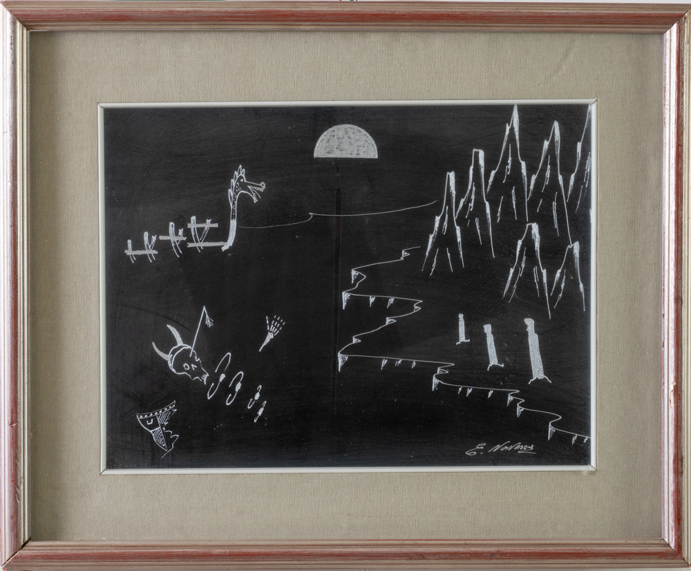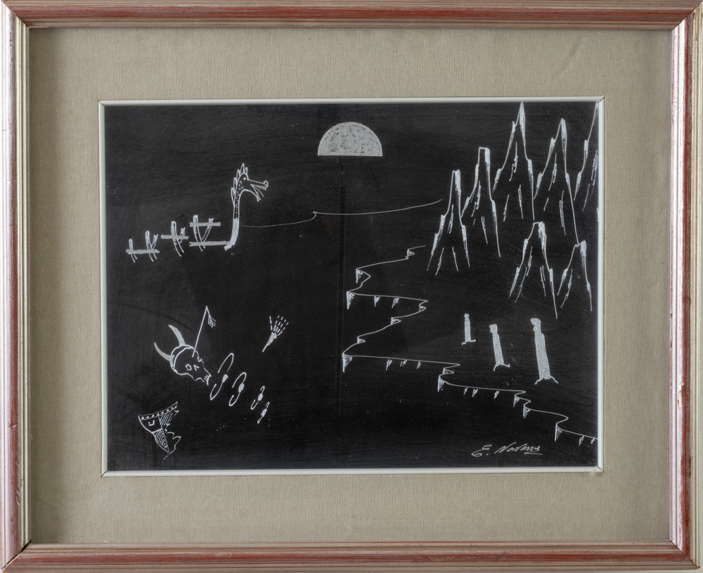 Emidio Navarra (L'Aquila 1915 - ?). Senza titolo. Cm. 30x40. Con cornice cm. 44x54. Incisione a mano su piastra metallica. Firma in lastra in basso a destra E.Navarra.