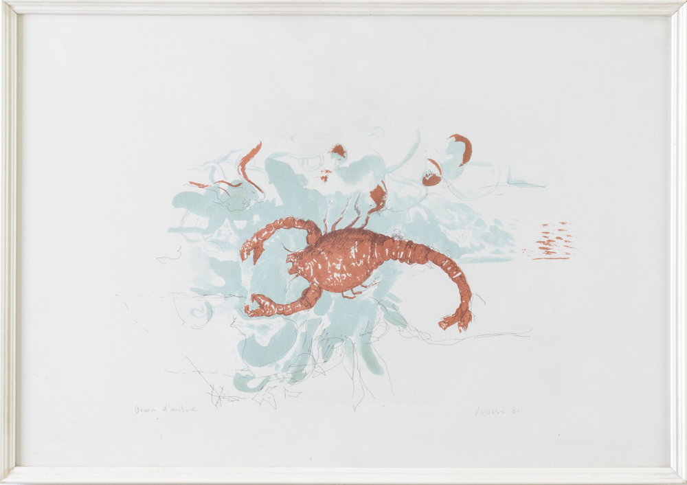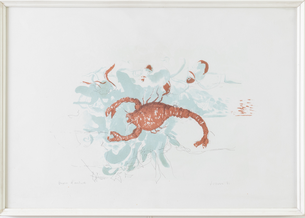 Enrico Visani (Marradi, 1938). Segni dello zodiaco: Scorpione. Cm. in cornice 36,5x51,5. Litografia a colori. Prova d'autore. Firmata e datata in basso a destra Visani '81.