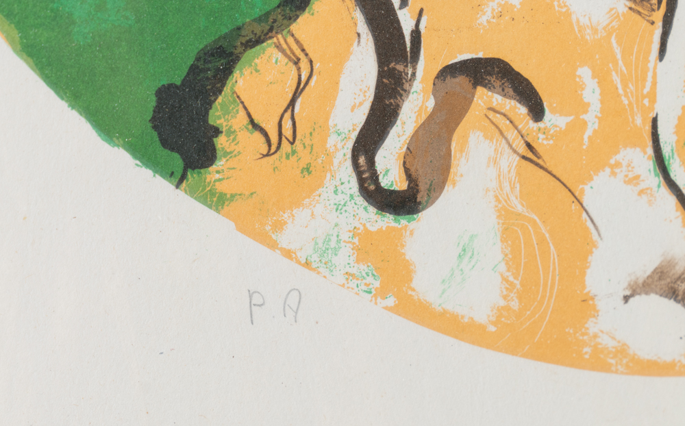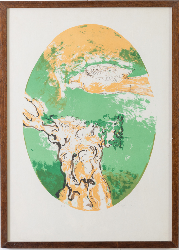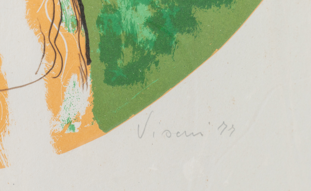 Enrico Visani (Marradi, 1938). Il nido.Cm in cornice 71x51. Litografia a colori. Prova d'artista. Firmata e datata in basso a destra Visani '77.