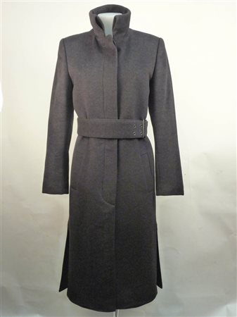 CAPPOTTO LUNGO IN LANA E CACHEMIRE ANTRACITE - CACHEMIRE AND WOOL COAT Gucci abbottonatura a impermeabile, alta cintura in vita, profondi spacchi laterali tg 42