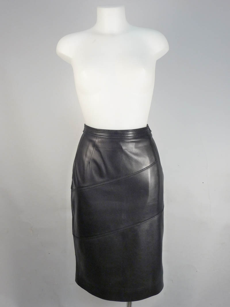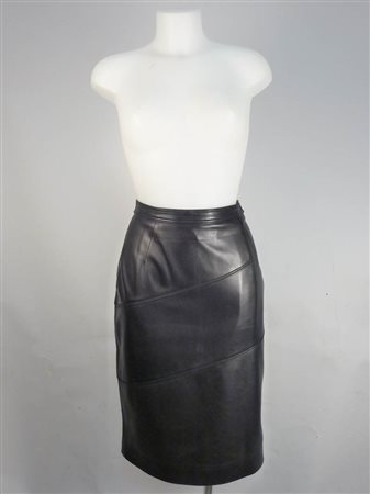 GONNA IN PELLE NERA - BLACK LEATHER SKIRT Gucci lunghezza al ginocchio, motivo di teli in obliquo tg 42