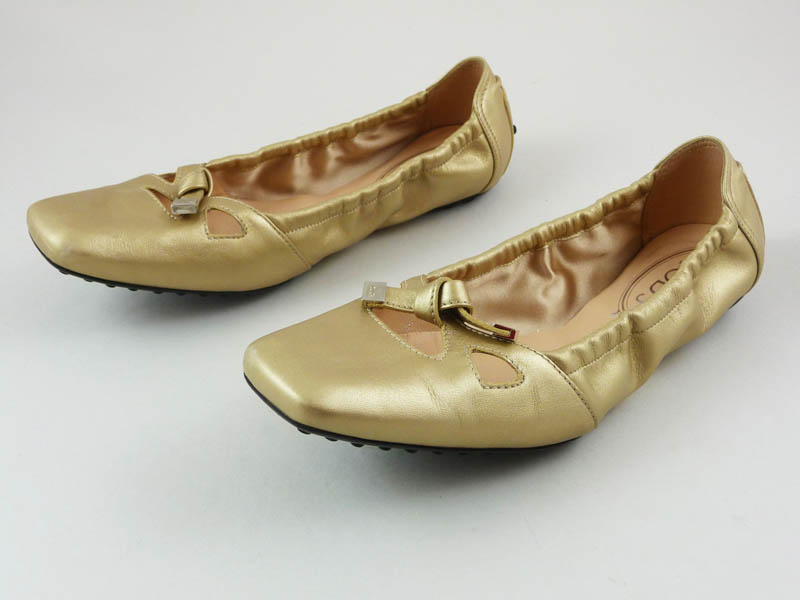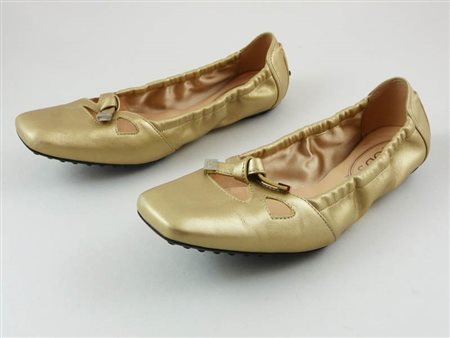 PAIO DI BALLERINE IN PELLE DORATA - PAIR OF GOLDEN LEATHER BALLET FLAT Tod's punte squadrate, suola a gommino, con scatola e busta in tessuto, nuove tg 38