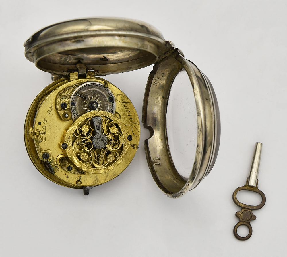 Orologio da tasca Clairet au Lude, fine 1700, Ref. 2634, argento 800/1000, con chiave