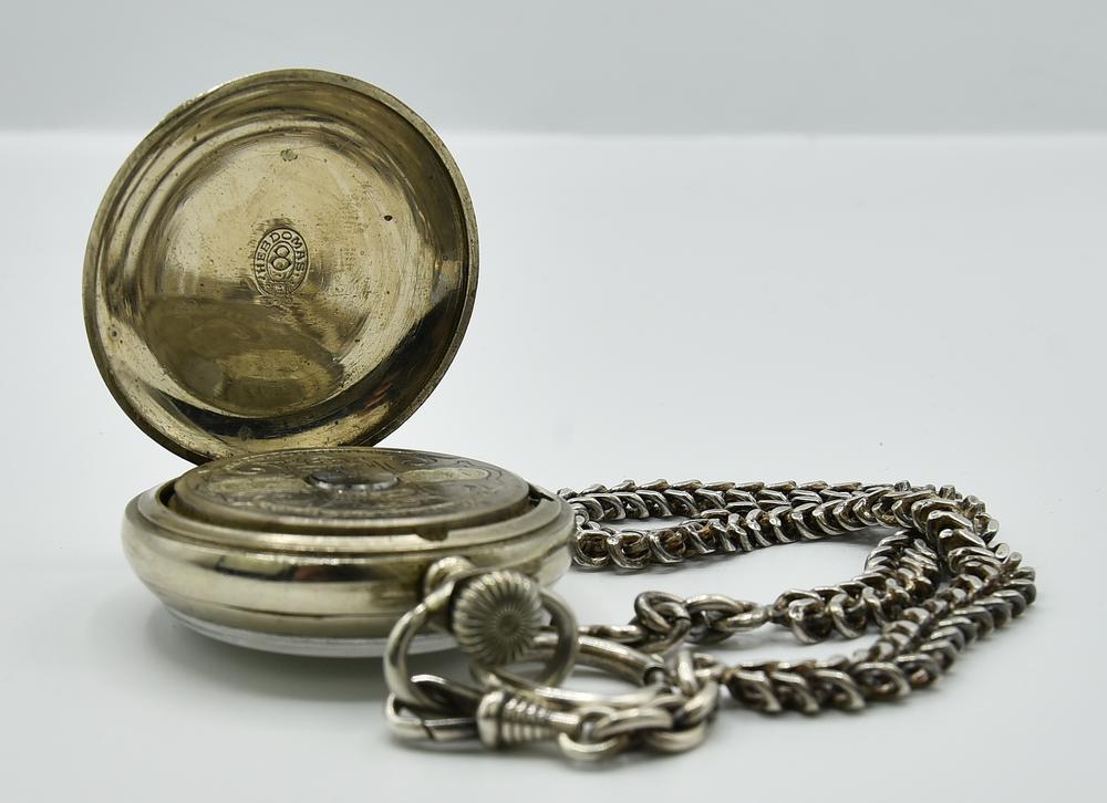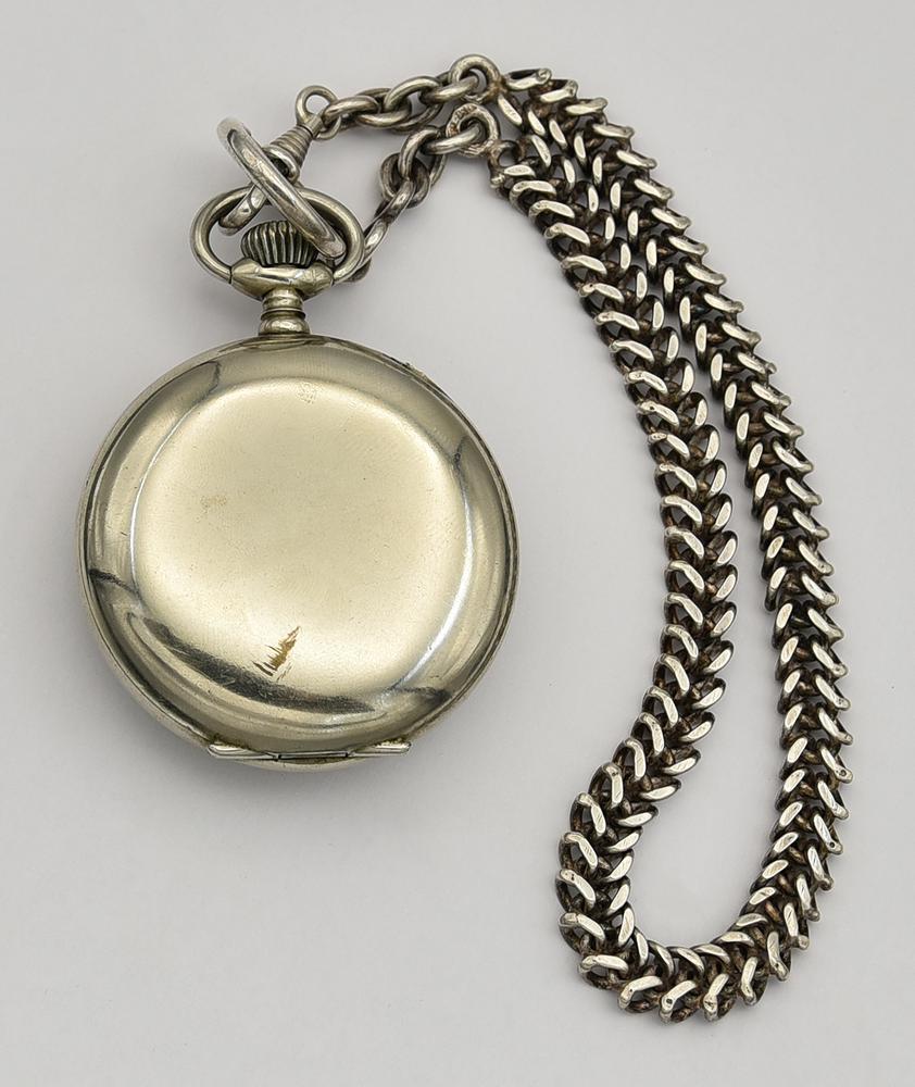 Orologio da tasca in metallo Hebdomas, catena in argento, 1850