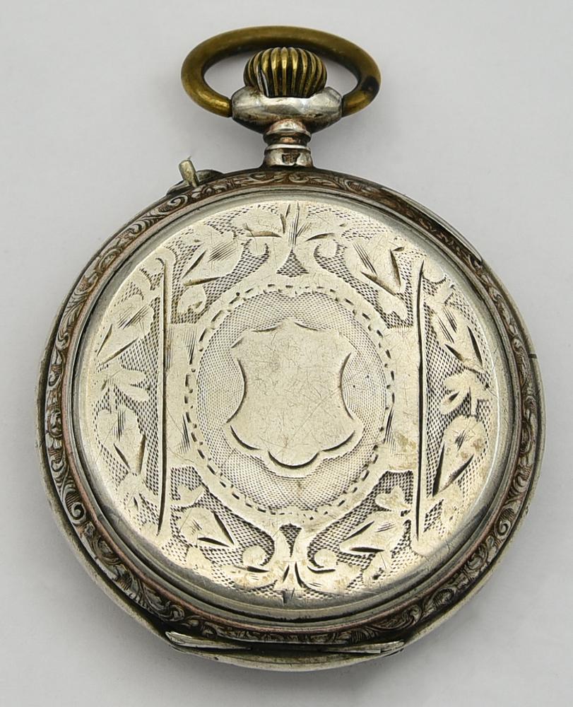 Orologio da tasca in metallo con tracce di doratura, primi 900