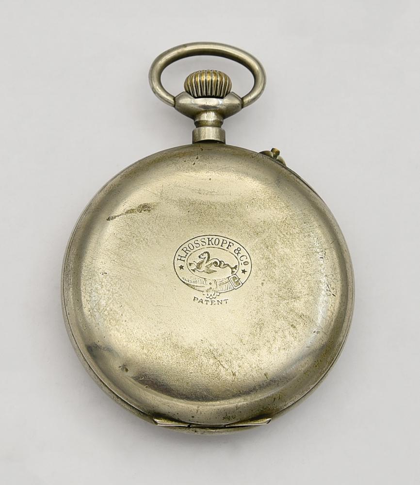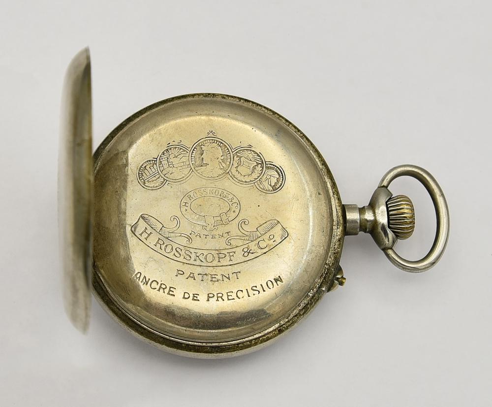 CASSA: in metallo con doppio fondello; sulla superficie esterna del fondello piu' interno inciso: "H. ROSSKPPF & Co/PATENT/H. ROSSKOPF & Co/PATENT/ANCRE DE PRECISION"