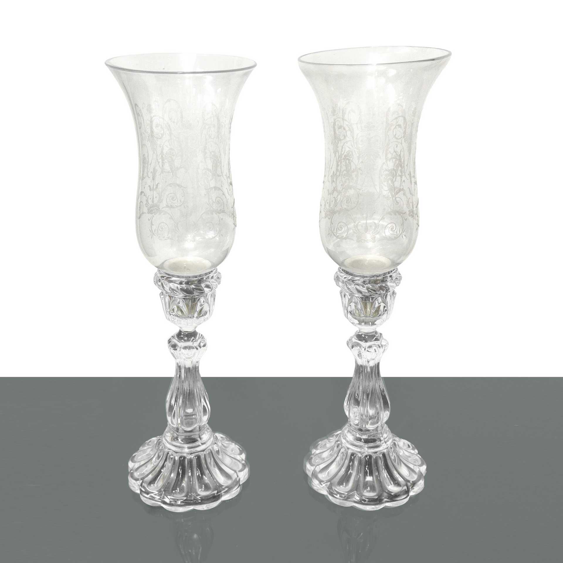 Coppia di lumi monoforo in cristallo con calice bulinato