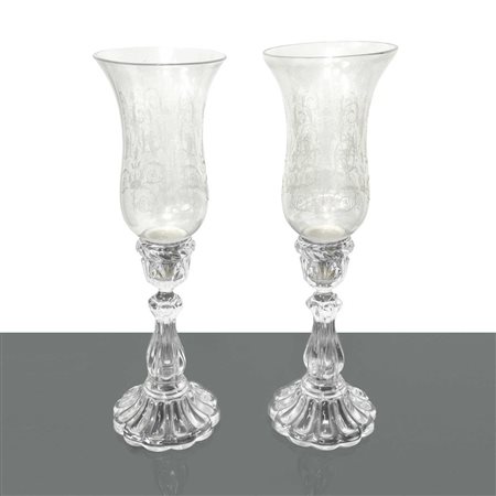 Coppia di lumi monoforo in cristallo con calice bulinato h cm 45 cadauno