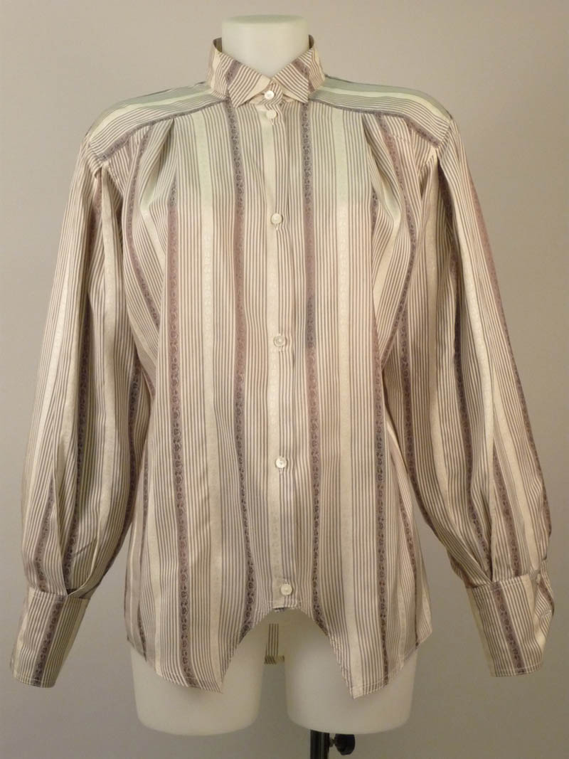 CAMICIA IN SETA GRIGIA - GRAY SILK BLOUSE Gucci motivi a righe nei toni del grigio chiaro e bianco tg 44