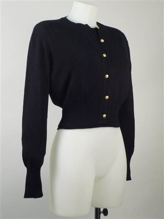 TWIN-SET IN LANA NERA - BLACK WOOL TWIN-SET Gucci composto da cardigan con bottoni dorati ed una maglia a manica corta tg L