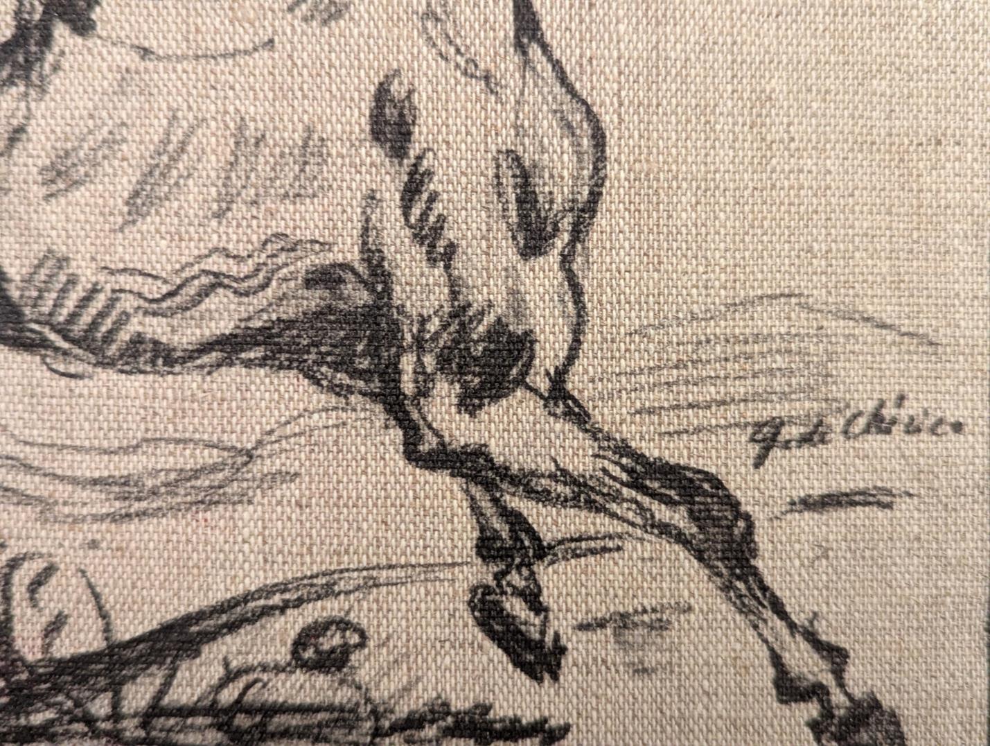 stampa su tela cm 18,5x26; con cornice cm 37,5x43 Opera proveniente dalla copertina in tela del volume raccolta de I Disegni di Giorgio De Chirico, in omaggio ai collezionisti della biblioteca Trec