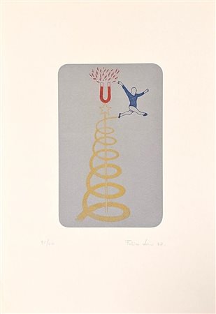 Felice Levini (Roma, 1956 - ) Salto magnetico litografia a colori cm 50x35