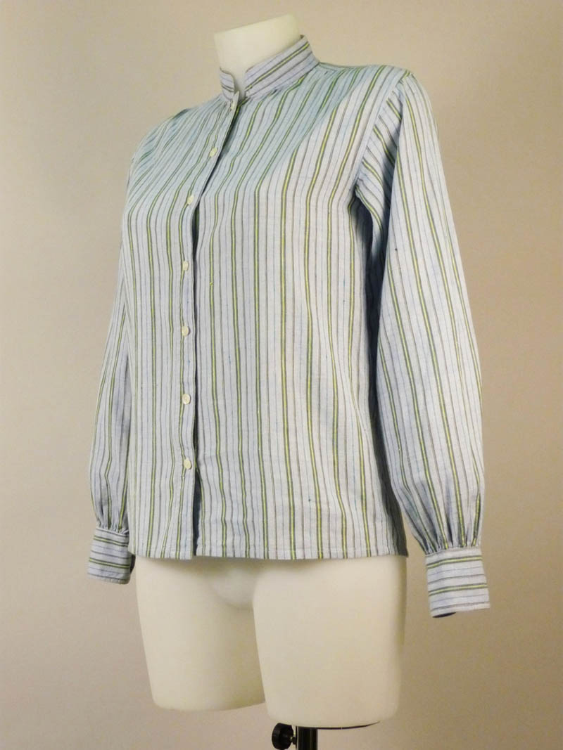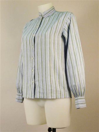CAMICIA IN COTONE A RIGHE - STREIGHT COTTON BLOUSE Saint Laurent Rive Gauche nei toni del verde e dell'azzurro, lievi difetti tg 35