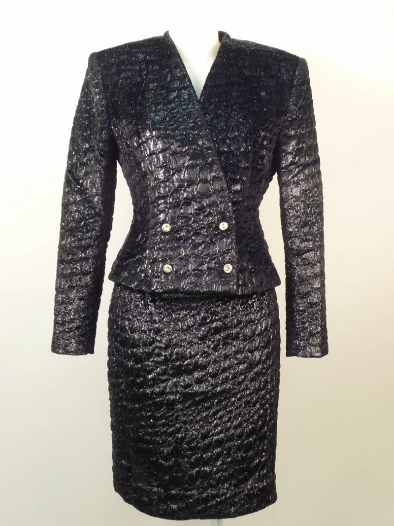 TAILLEUR IN VELLUTINO NERO LAME - BLACK LAME TAILLEUR Gucci giacca doppiopetto con bottoni gioiello, gonna stretta