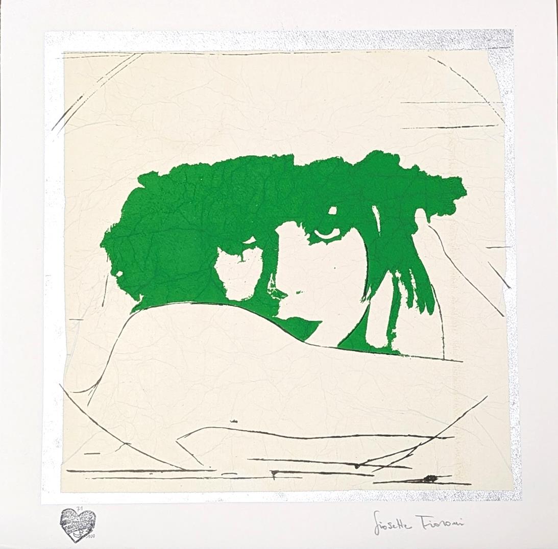Giosetta Fioroni (Roma, 1932 - ) Doppio Liberty Verde serigrafia materica con pigmento e argento sintetico su carta Pescia in cotone da 350 grammi cm 50x50