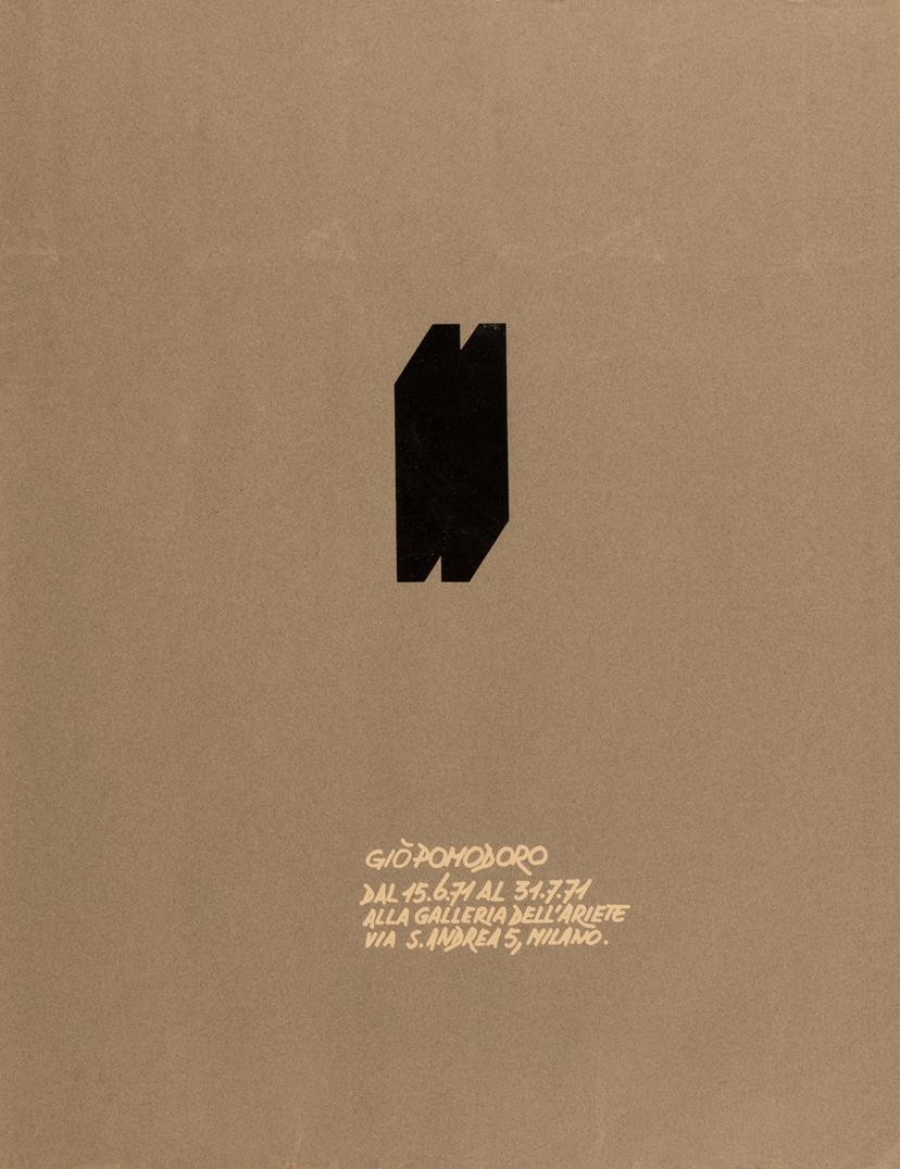 Giò Pomodoro (Orciano di Pesaro, 1930 - Milano, 2002) Manifesto della mostra tenutasi presso La Galleria dell'Ariete in Milano dal 15.06.1971 al 31.07.1971 cm 65x50