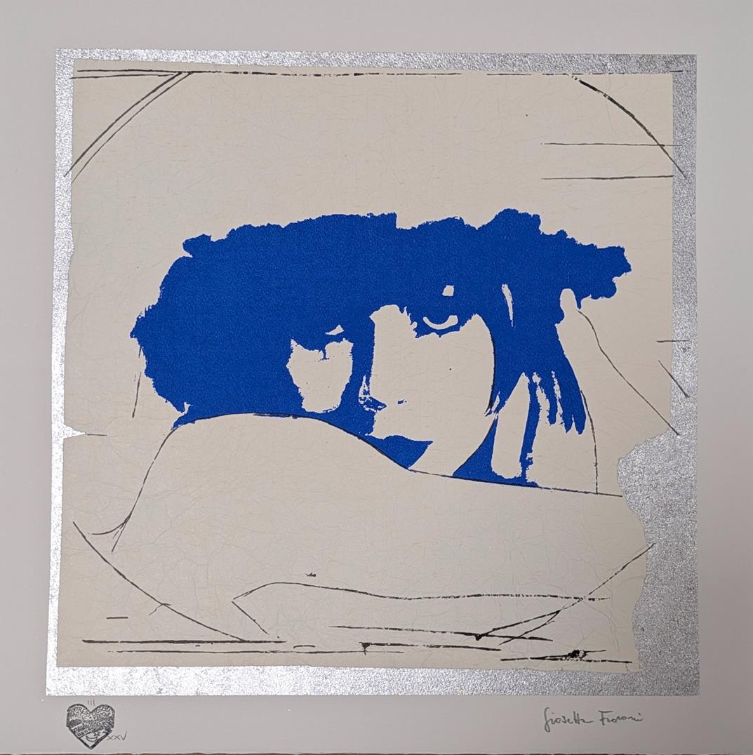 Lot 184 | Giosetta Fioroni (Roma, 1932 - ) Doppio Liberty Blu serigrafia materica con pigmento e argento sintetico su carta Pescia in cotone da 350 grammi cm 50x50