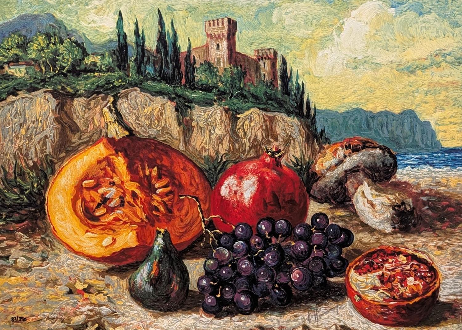 Giovan Francesco Gonzaga (Milano, 1921 - Milano, 2007) Natura morta serigrafia su tela cm 50x70