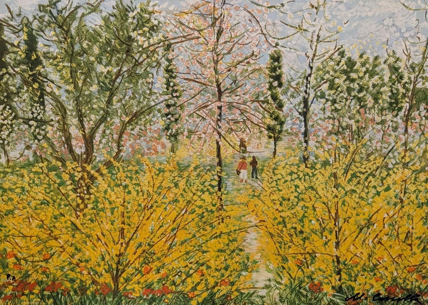 Michele Cascella (Ortona, 07/09/1892 - Milano, 31/08/1989) Viottolo tra Ginestre 1984 Serigrafia e Litografia a 33 passaggi di colore su Tela cm 50x70