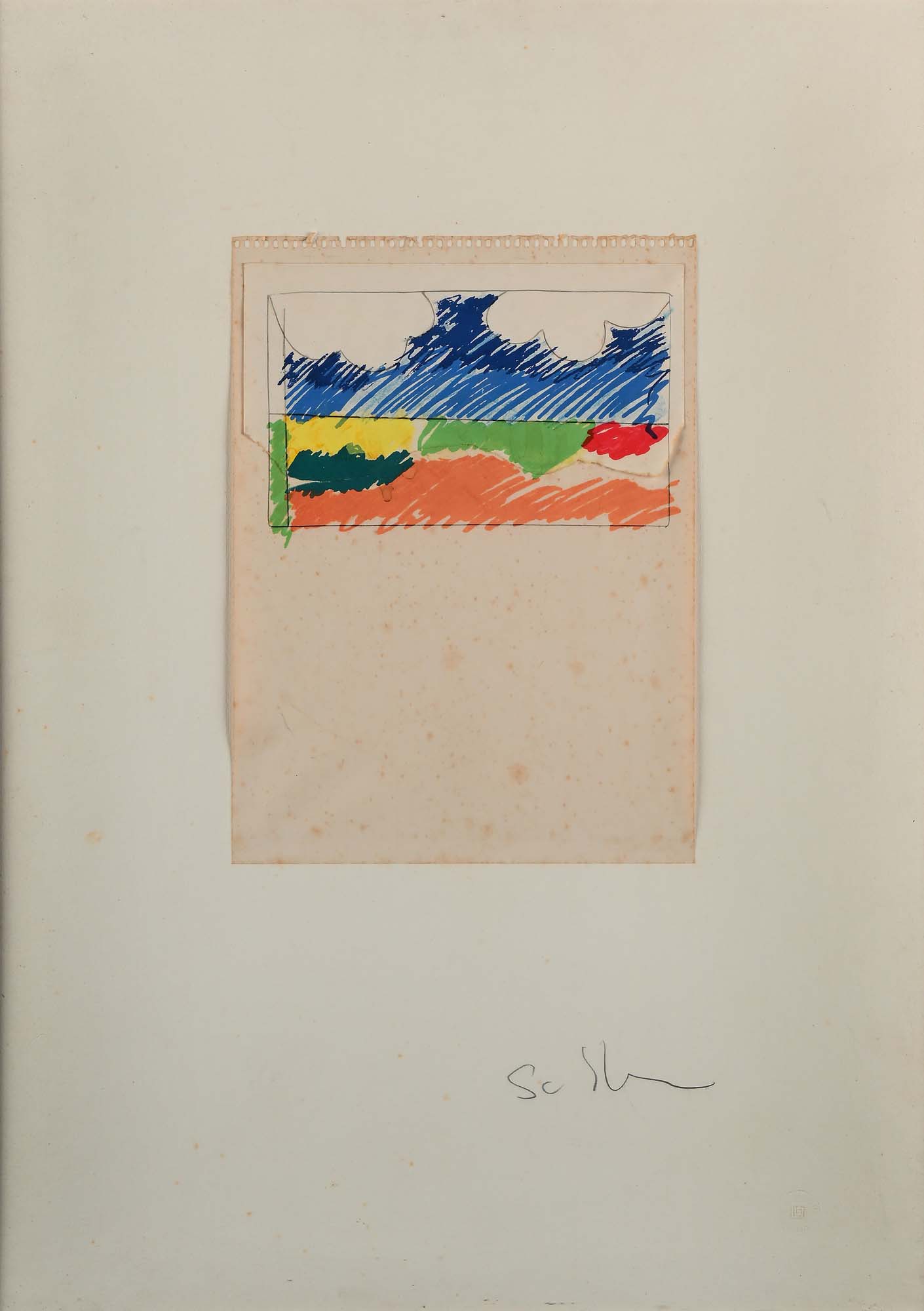 Mario Schifano Senza titolo Fine anni '70, Inizi anni '80 Serigrafia e collage su carta cm 70x50 - in cornice cm Firma "Schifano". Certificato di autenticità rilasciato dall'Archivio Mario Schifano di Roma