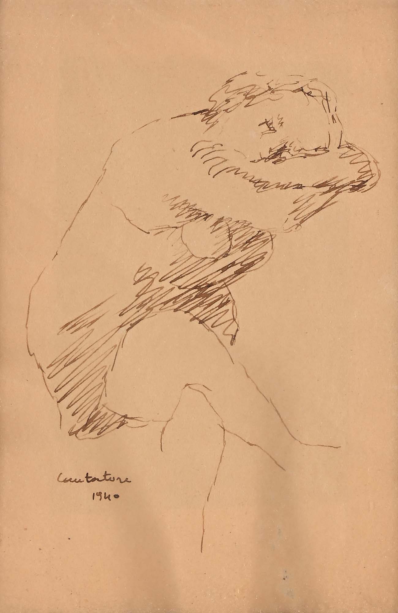 Domenico Cantatore Nudo di donna seduta 1940 China su carta cm 17x12 - in cornice cm 18x14 Firma e data in basso a sinistra "Cantatore 1940" Coll. Felice Chilanti, Roma