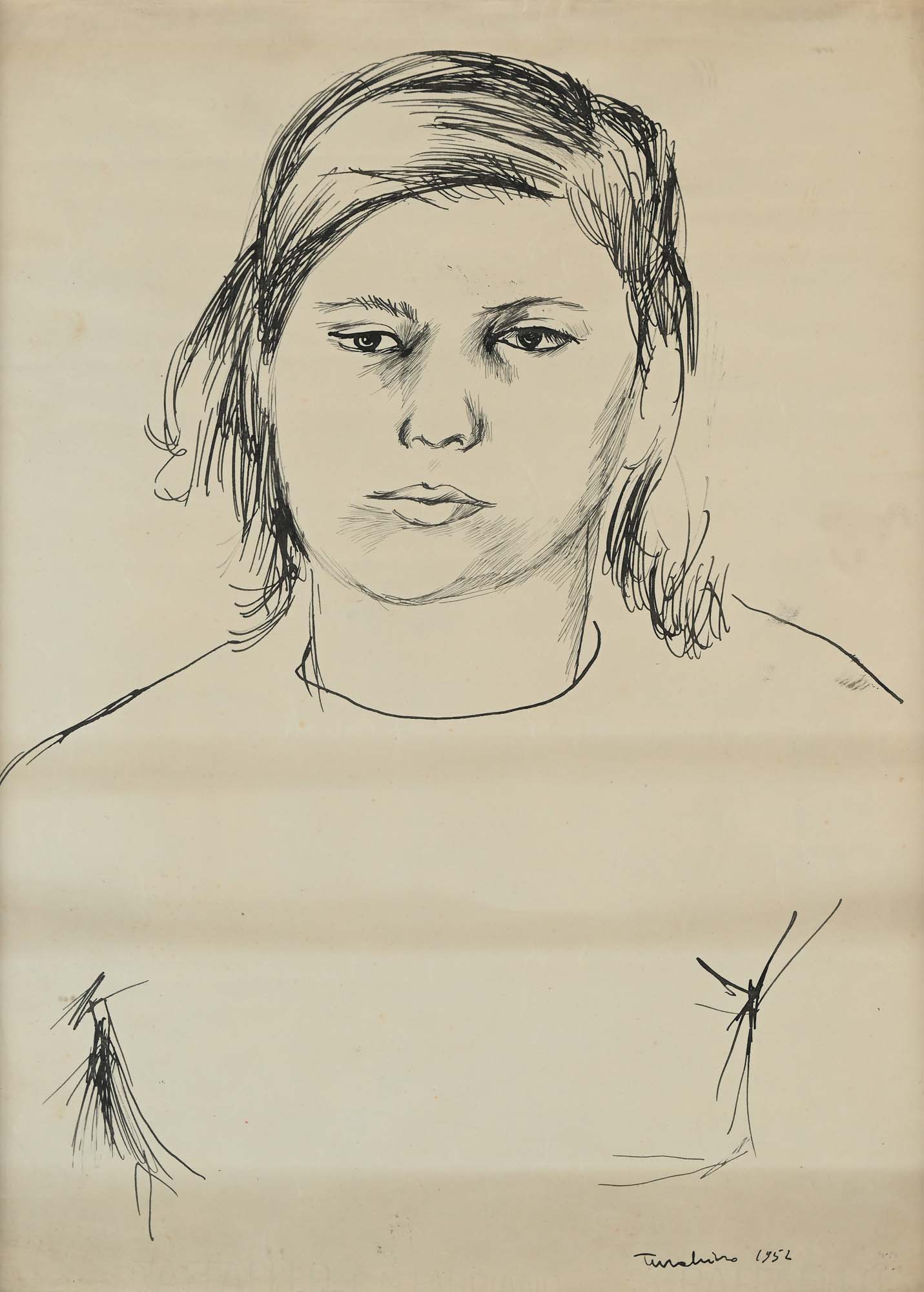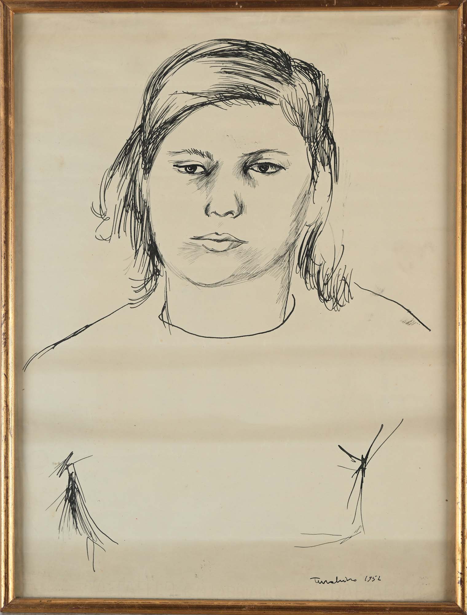 Aldo Turchiaro Ritratto di donna 1952 China su carta cm 44x33 - in cornice cm 46x35 Firma e data "Turchiaro 1952" Coll. Felice Chilanti, Roma