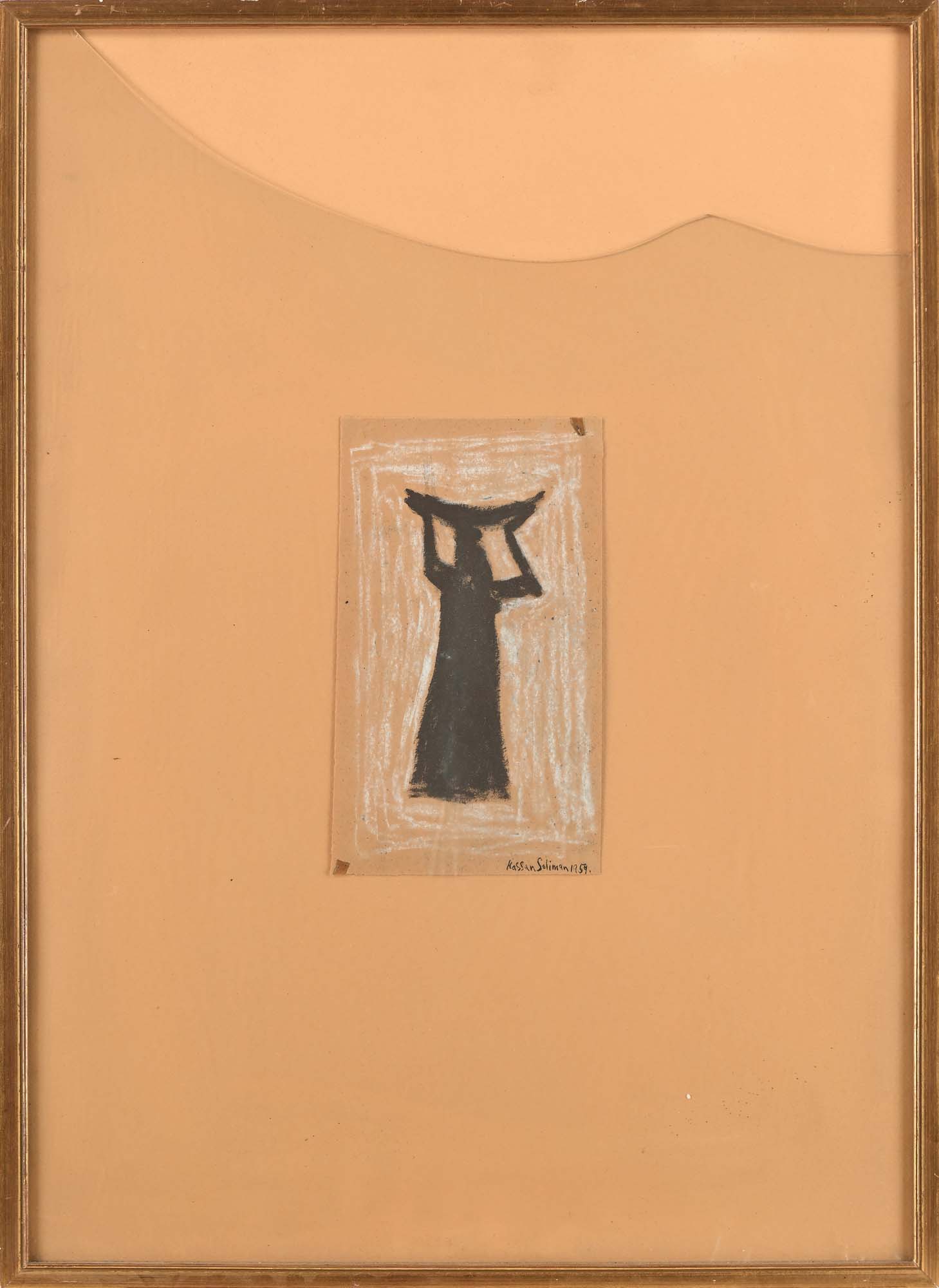 Hassan Soliman Soliman, disegno donna conv aso in testa 1959 Pastelli cerosi su carta cm 24,5x18,5 - in cornice cm 70x51 Firma e data "Hassan Soliman 1959" Coll. Felice Chilanti, Roma