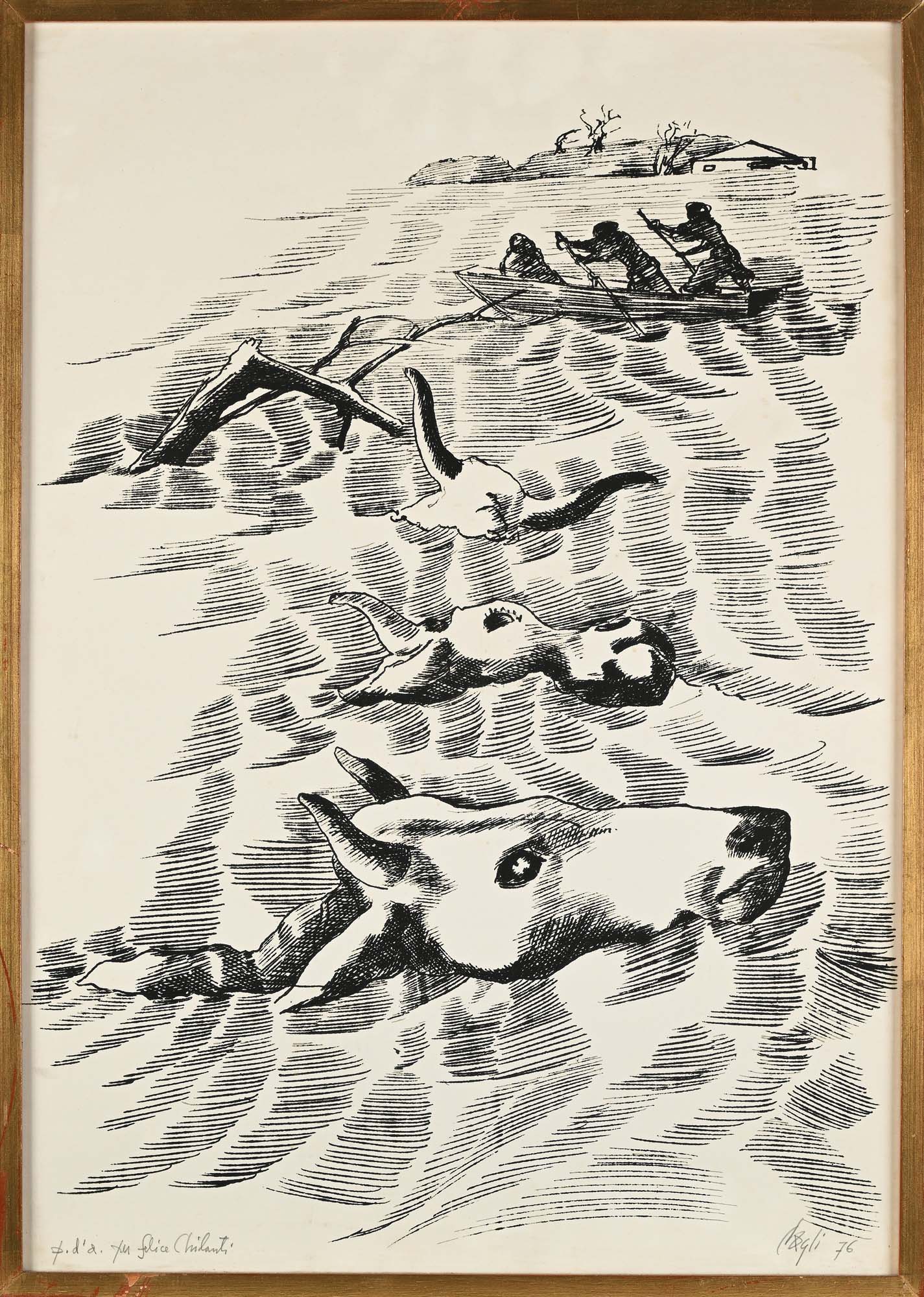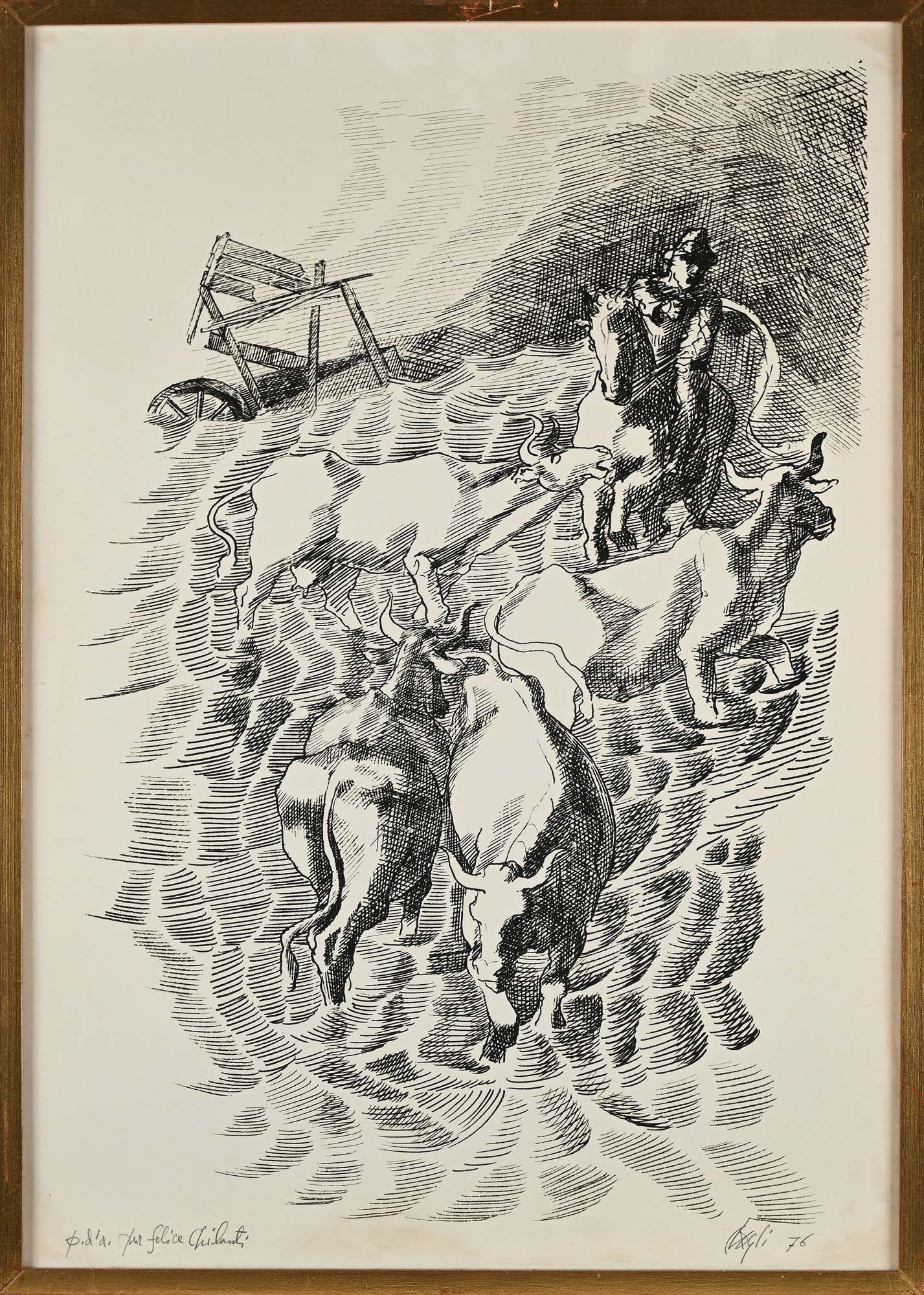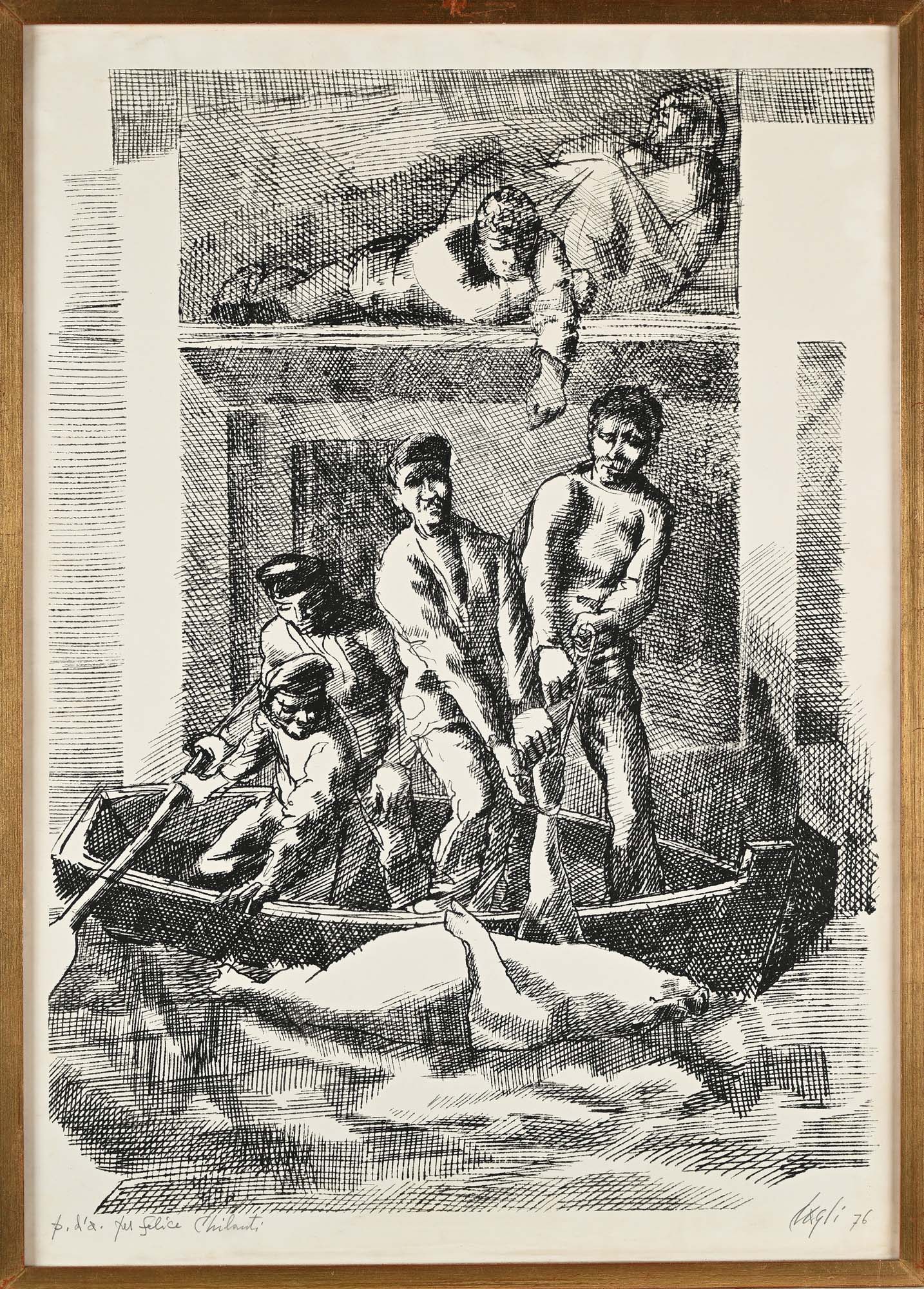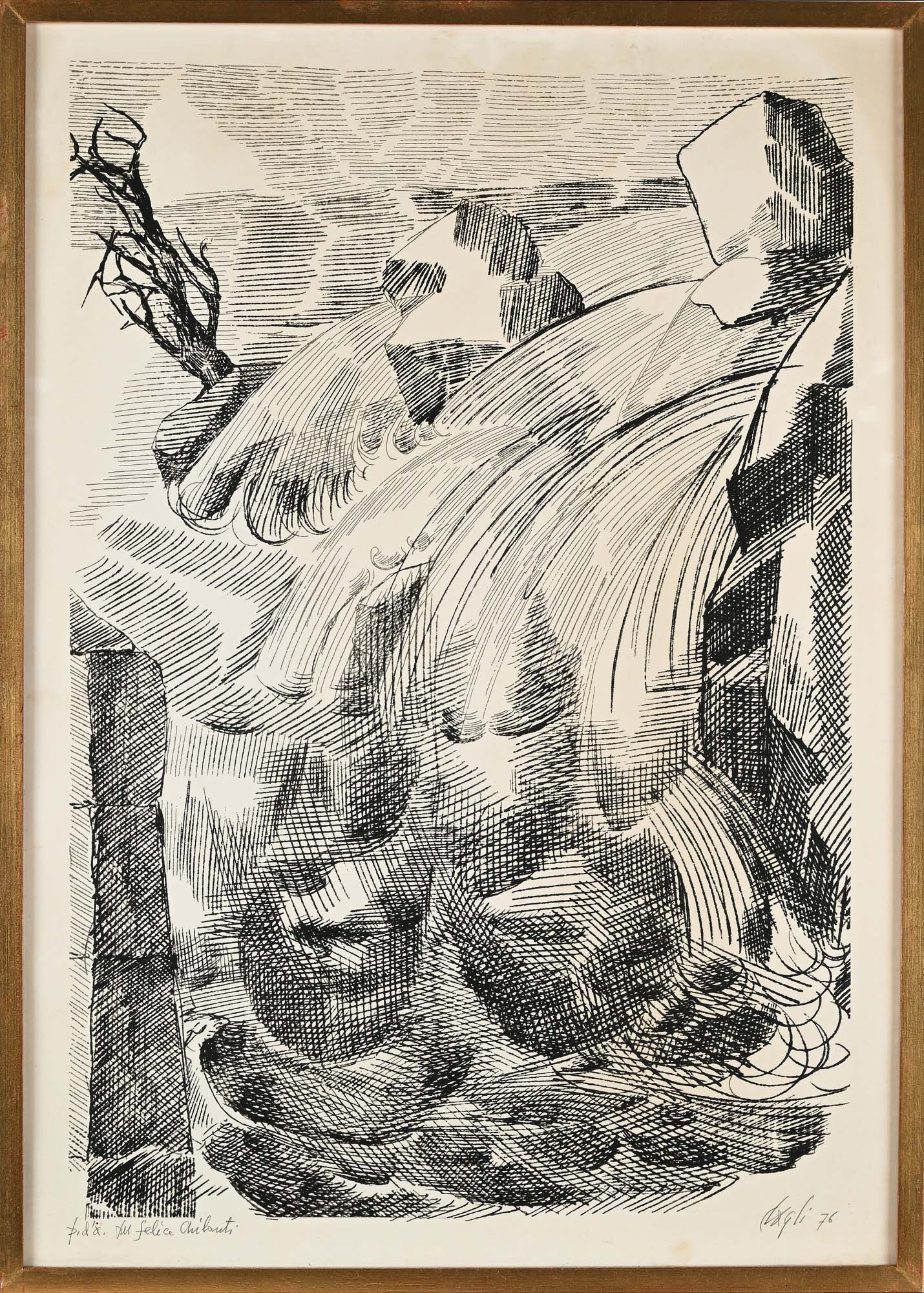 Corrado Cagli Sei litografie di Corrado Cagli in cornice 1976 Litografia Tutte e sei le litografie sono firmate, datate e dedicate "Cagli '76, P.d.s. per Felice Chilanti". Ognuna misura cm 70x50 Coll. Felice Chilanti, Roma