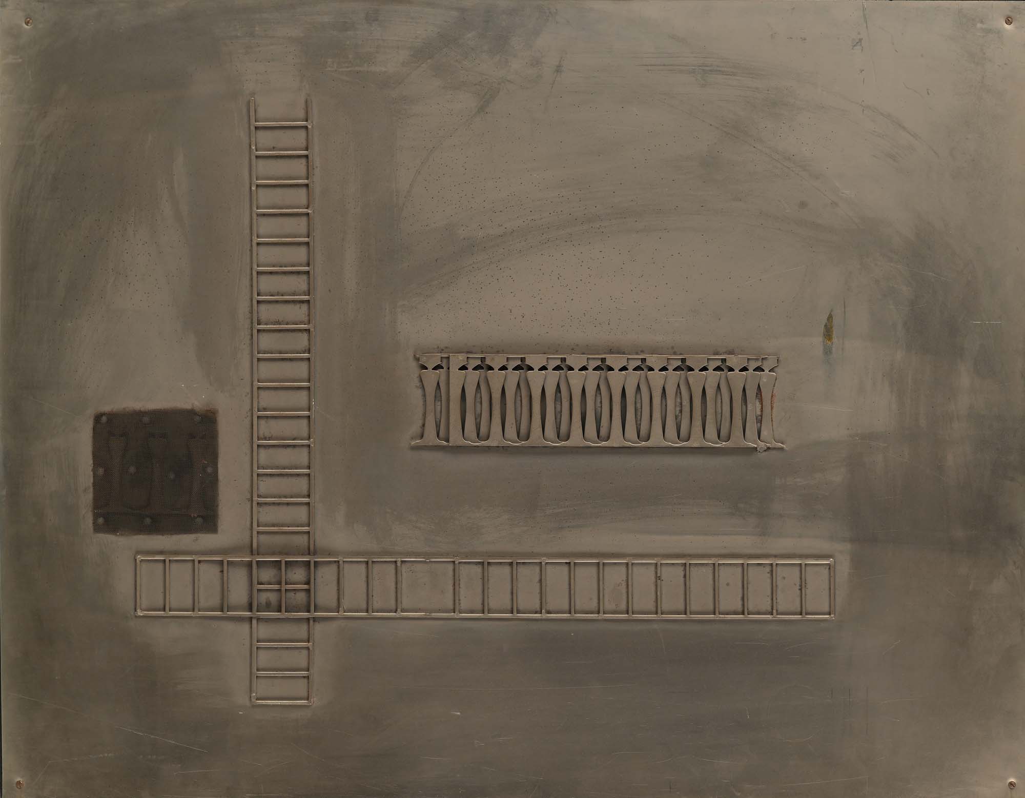 Paolo Conti Senza titolo 1971 Lastra di metallo su telaio in legno cm 63x80...