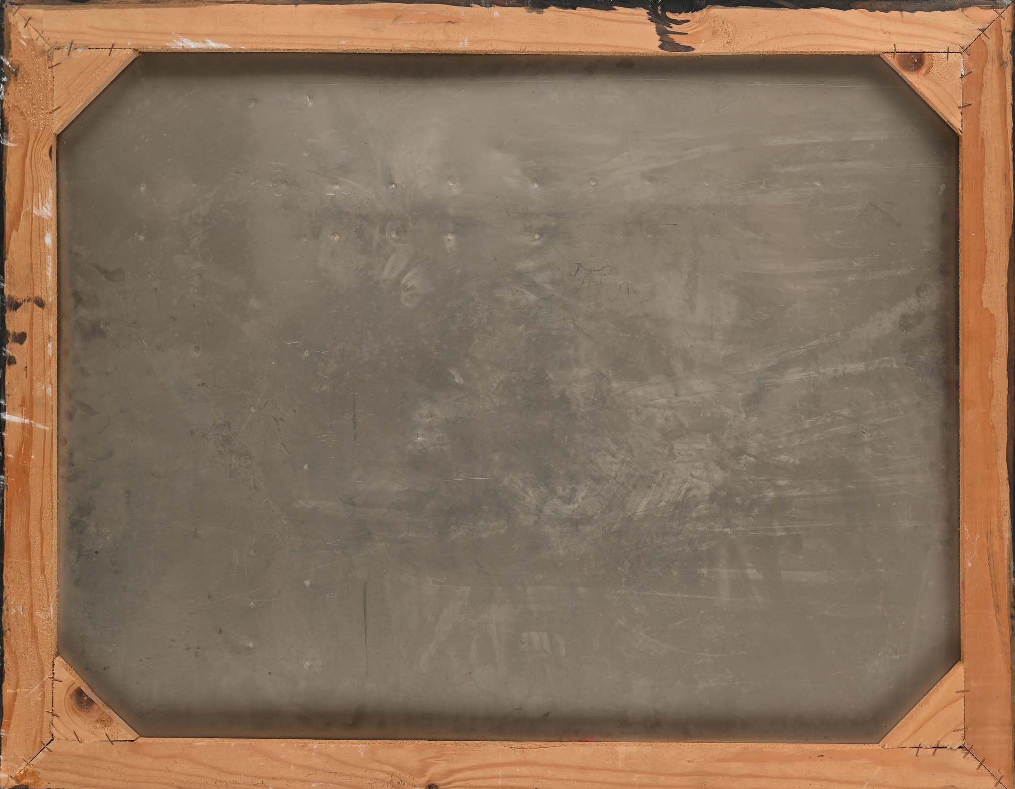 Paolo Conti Senza titolo 1971 Lastra di metallo su telaio in legno cm 63x80 Firma non decifrata e data in basso a destra Coll. Felice Chilanti, Roma