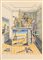 Giorgio De Chirico Interno Metafisico 1970 Litografia e acquarello su carta...