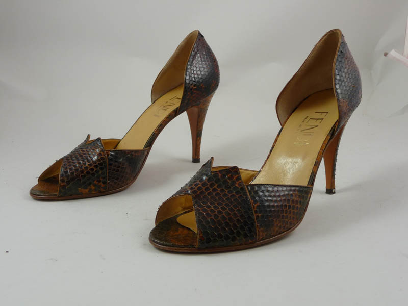 DECOLLETÈ IN RETTILE MARRONE - BROWN REPTILE DECOLLETÈ Fendi lievi difetti tg 39½