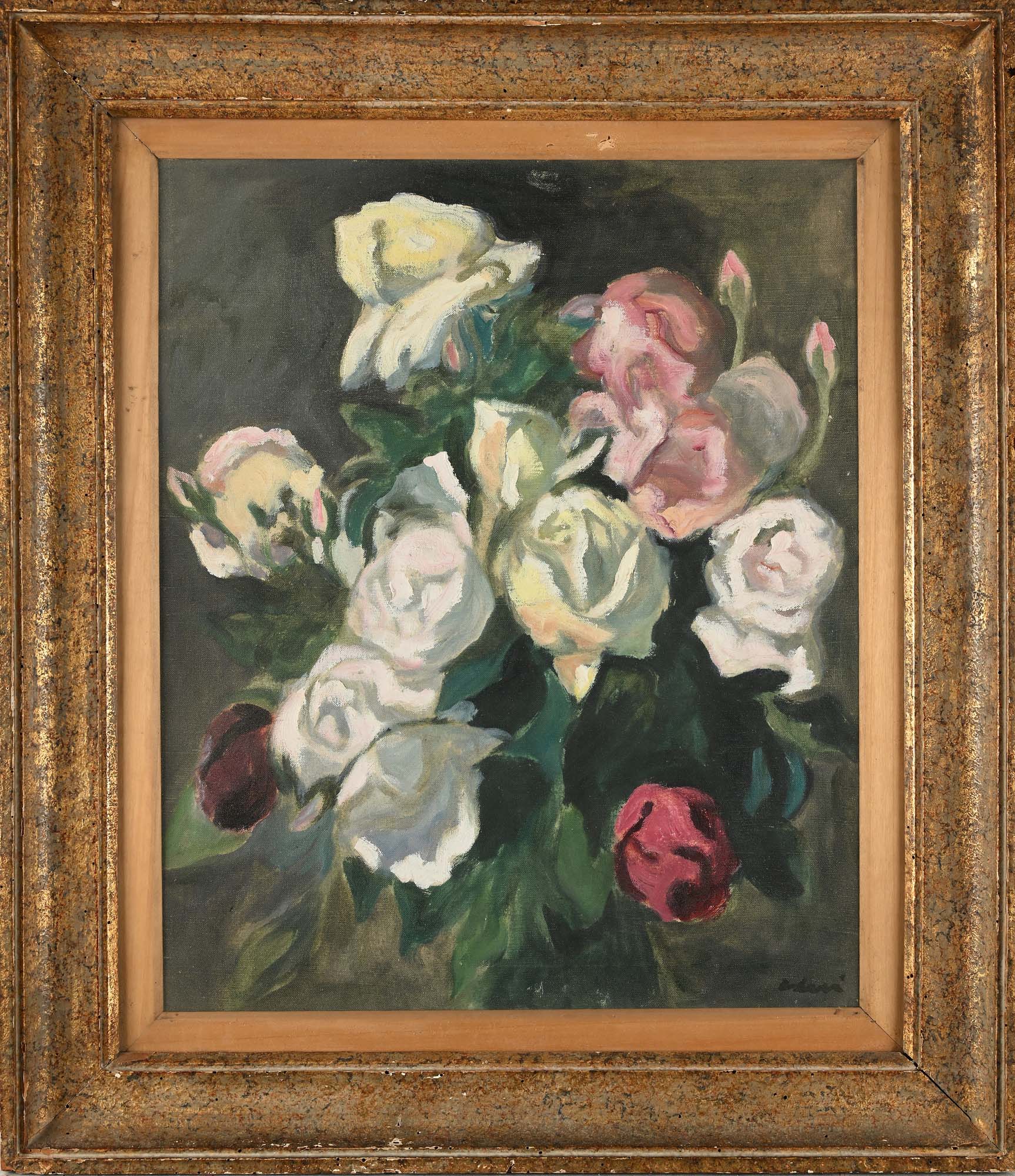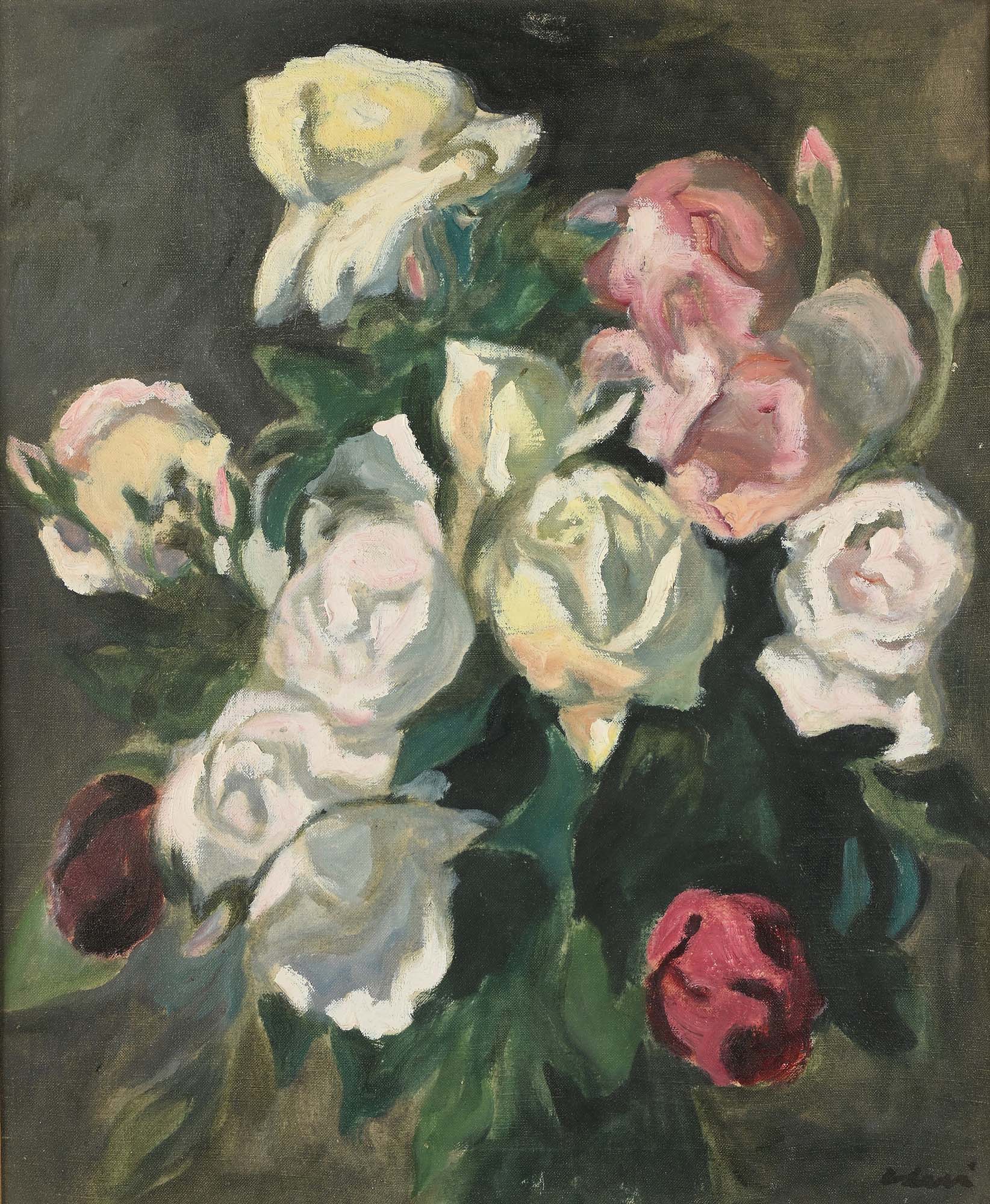 Carlo Levi Fiori Olio su tela cm 60x50 - in cornice cm 80,5x69,5 Firma in basso a destra "C.Levi". Certificato di autenticità rilasciato dalla Fondazione Carlo Levi, Roma