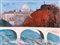 Beppe Guzzi Veduta di Roma con Castel Sant'Angelo e San Pietro 1969 Olio su...