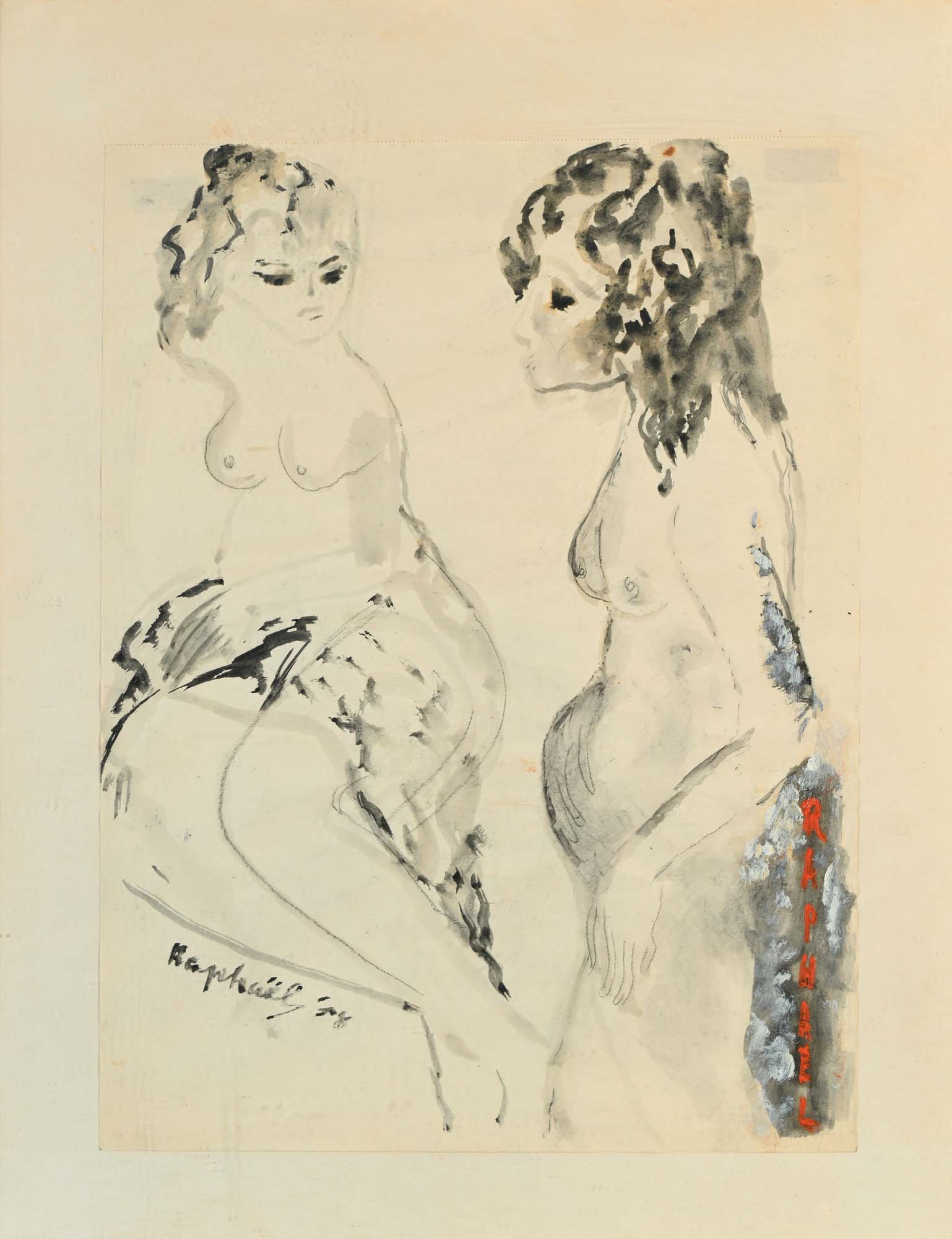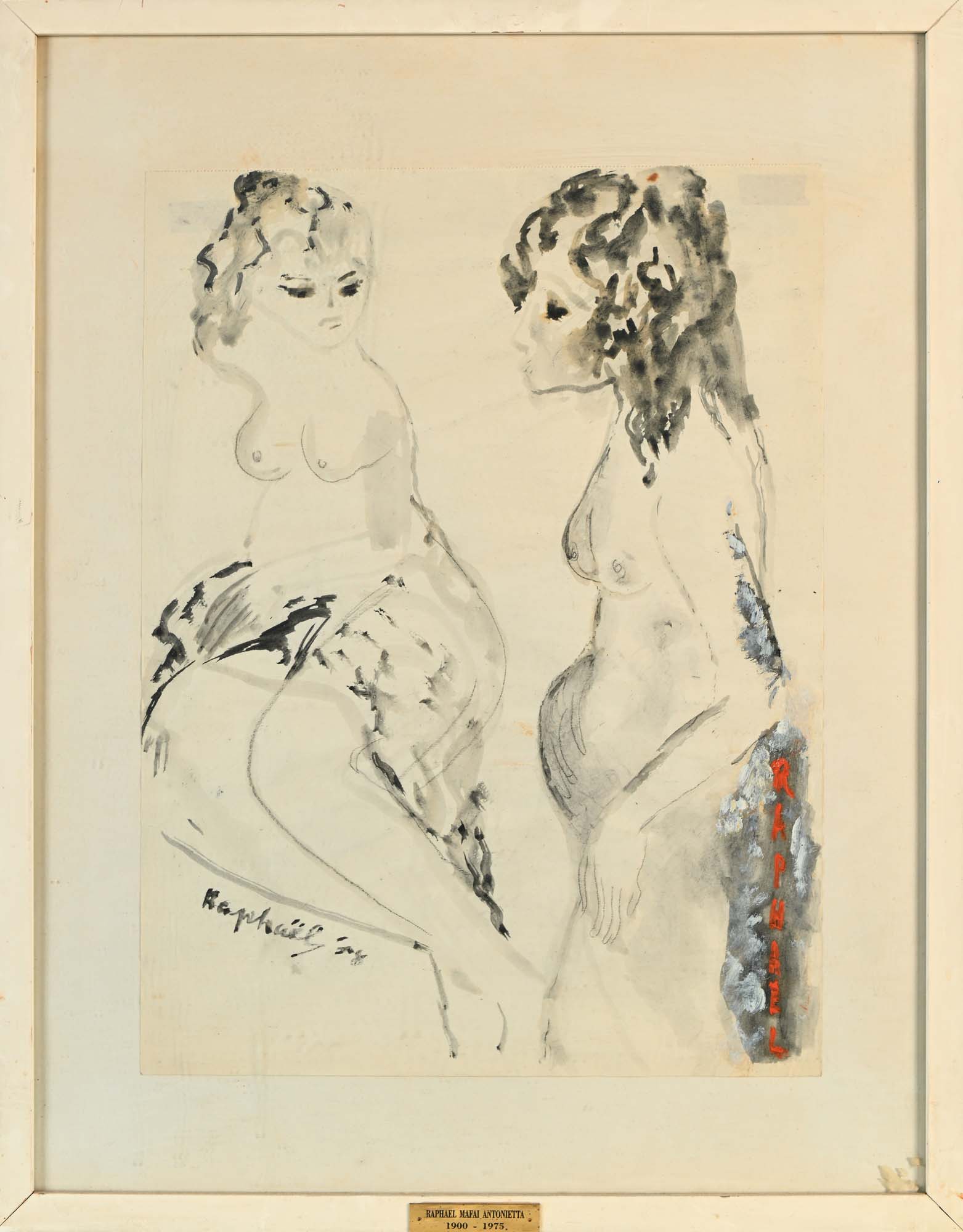 Antonietta Raphael Mafai Due donne 1958 Matita e acquarello e tempera su carta cm 46x34 - in cornice cm 62x48 Doppia firma sul fronte "Raphael" e "Raphael '58". Al verso reca etichetta della Galleria Il Gabbiano.