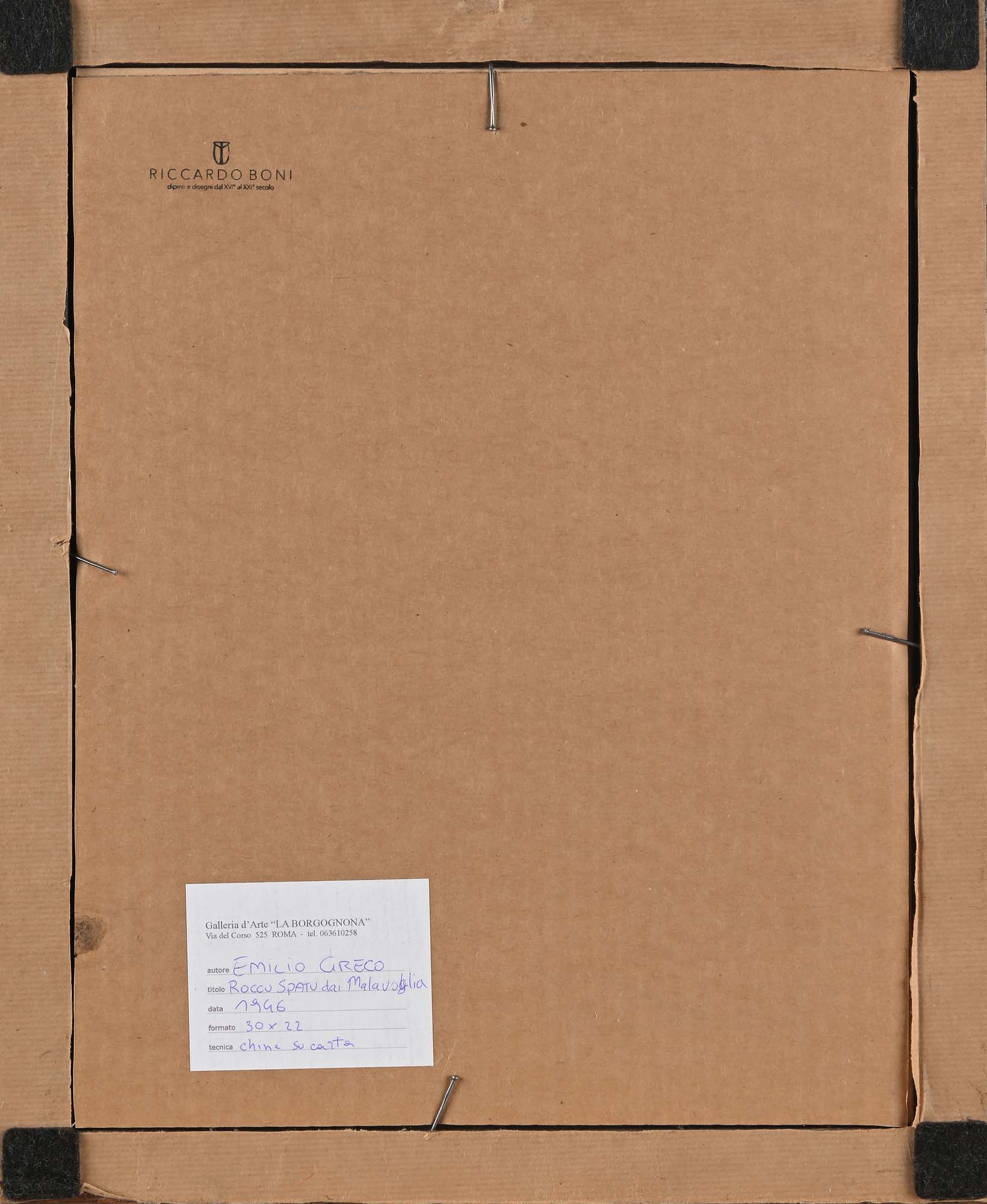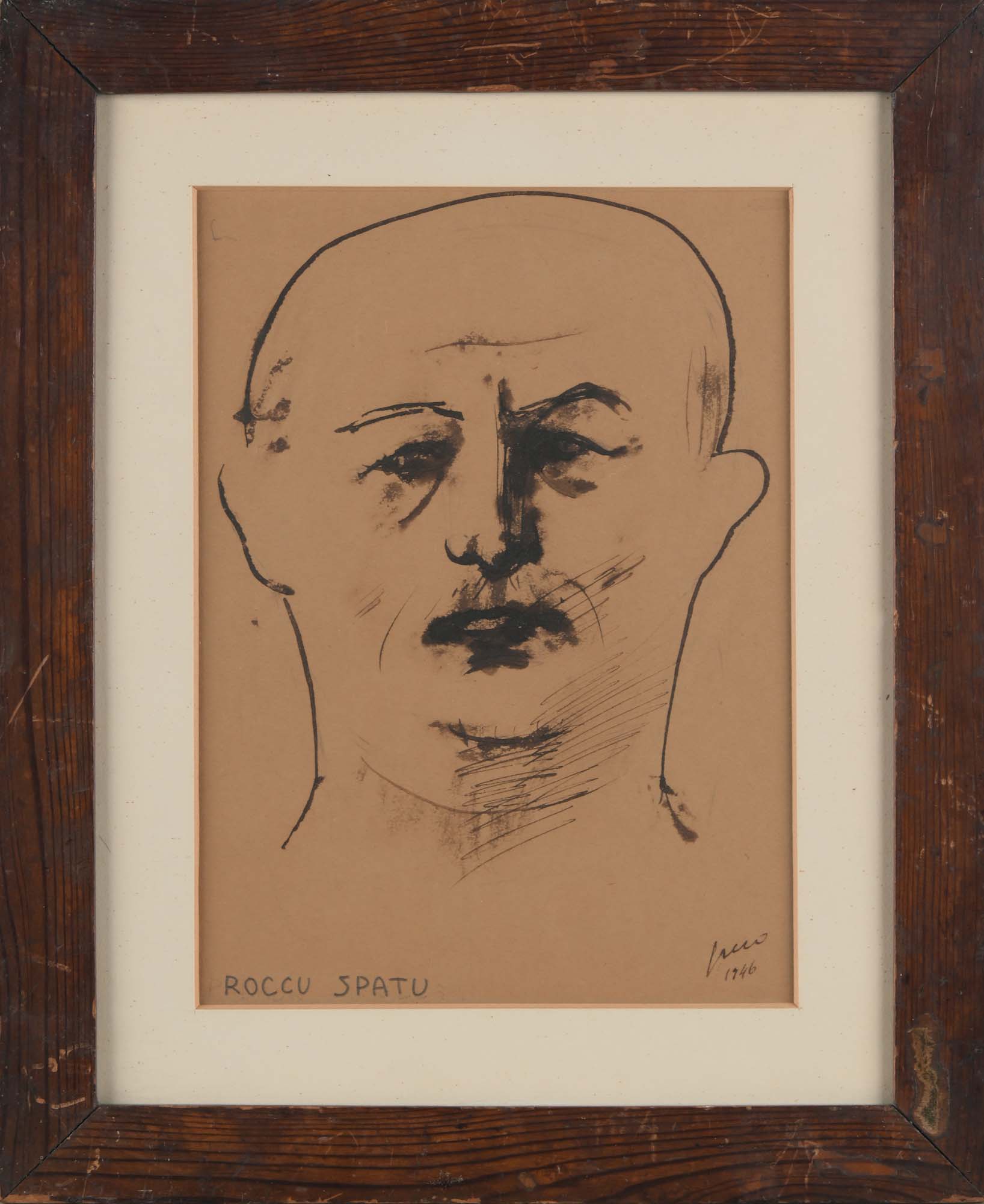 Emilio Greco Ritratto di Rocco Spatu 1946 Inchiostro su carta cm 30x22 - in cornice cm 44x36 Firma, titolo e data sul fronte in basso "Rocco Spatu, Greco 1946". Autentica su fotografia firmata da Emilio Greco