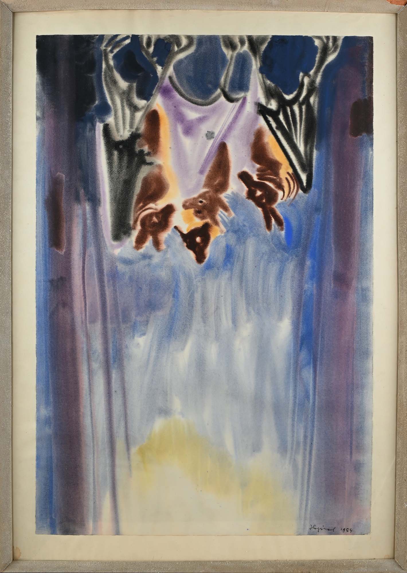 Janos Hajnal Pipistrelli 1954 Acquarello su carta cm 103,5x69 - in cornice cm 118x84 Firma e data in basso a destra