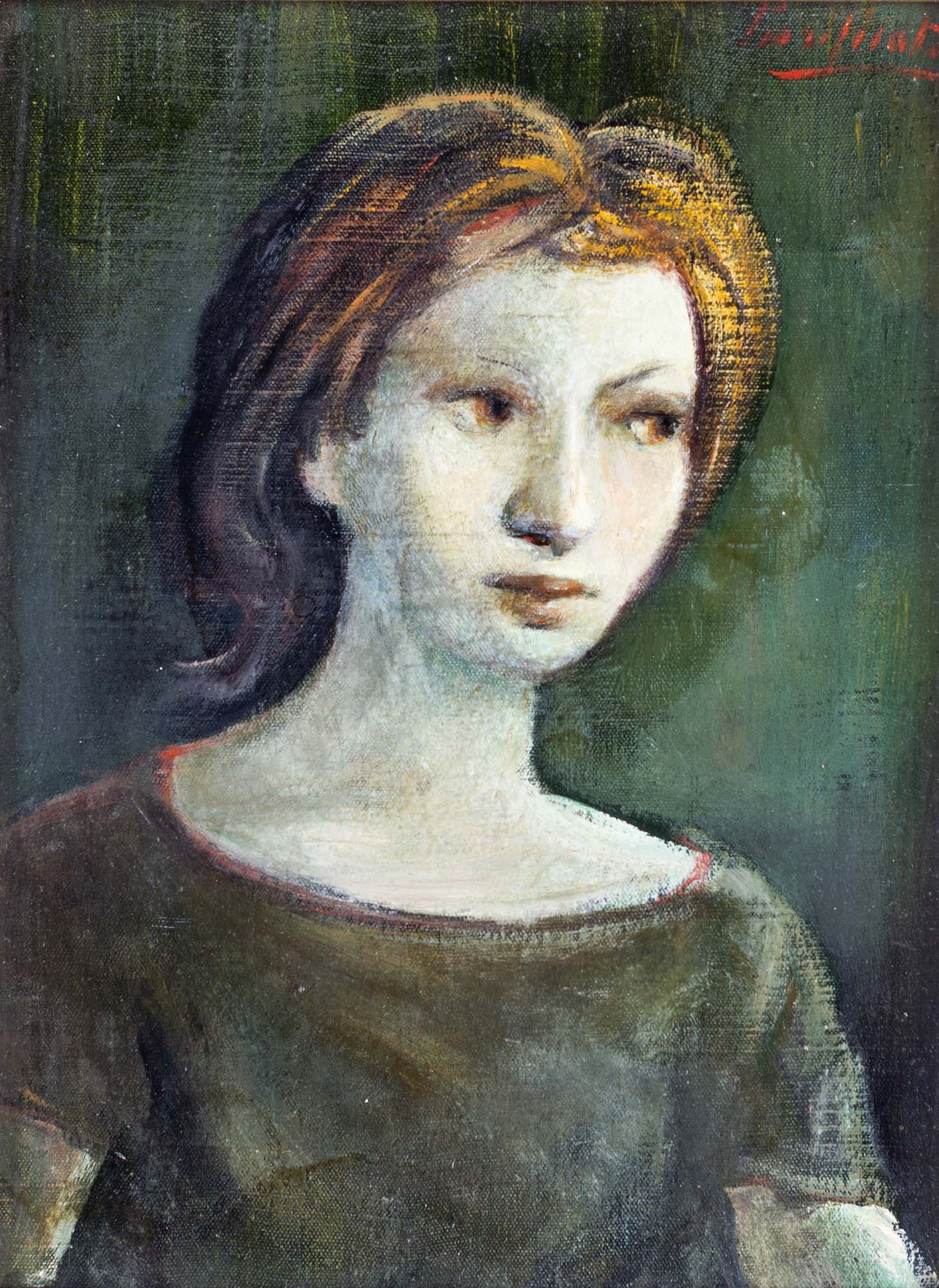 Domenico Purificato Ritratto di donna 1977 Olio su tela cm 40x30 Firma in...