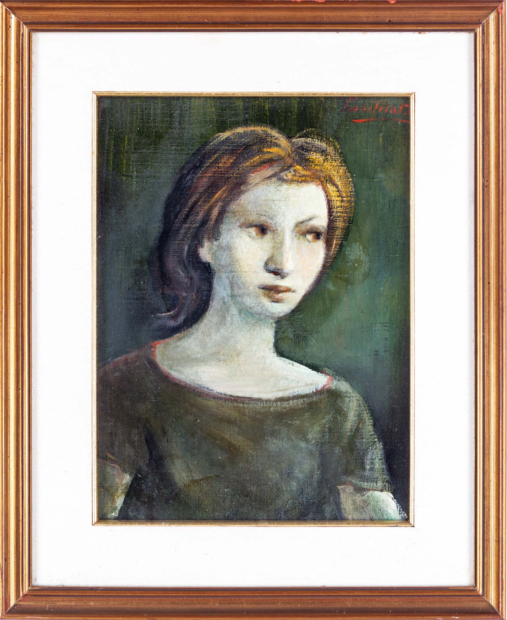 Domenico Purificato Ritratto di donna 1977 Olio su tela cm 40x30 Firma in alto "Purificato". Al verso reca dedica, firma e data