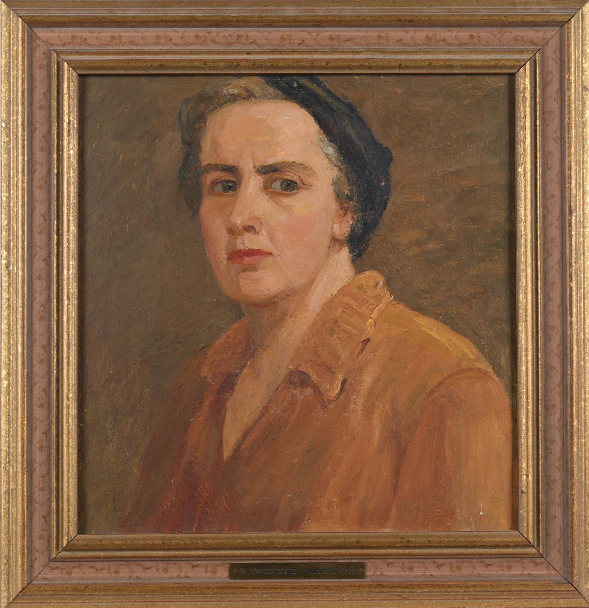 Virginia Tomescu Scrocco (attribuito a) Autoritratto 1939 Olio su tavola cm 44x42 - in cornice cm 58x56