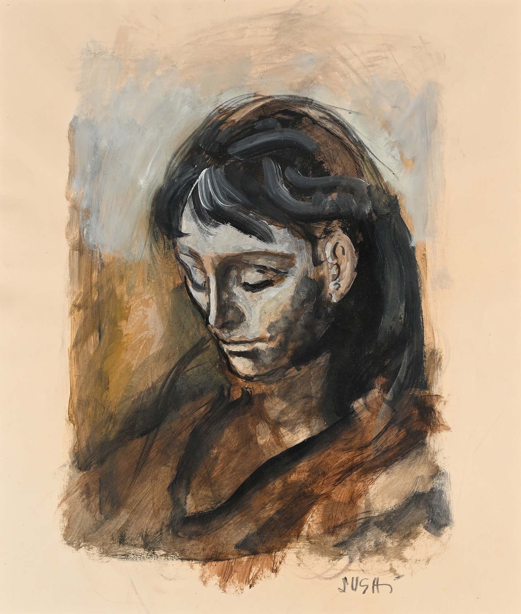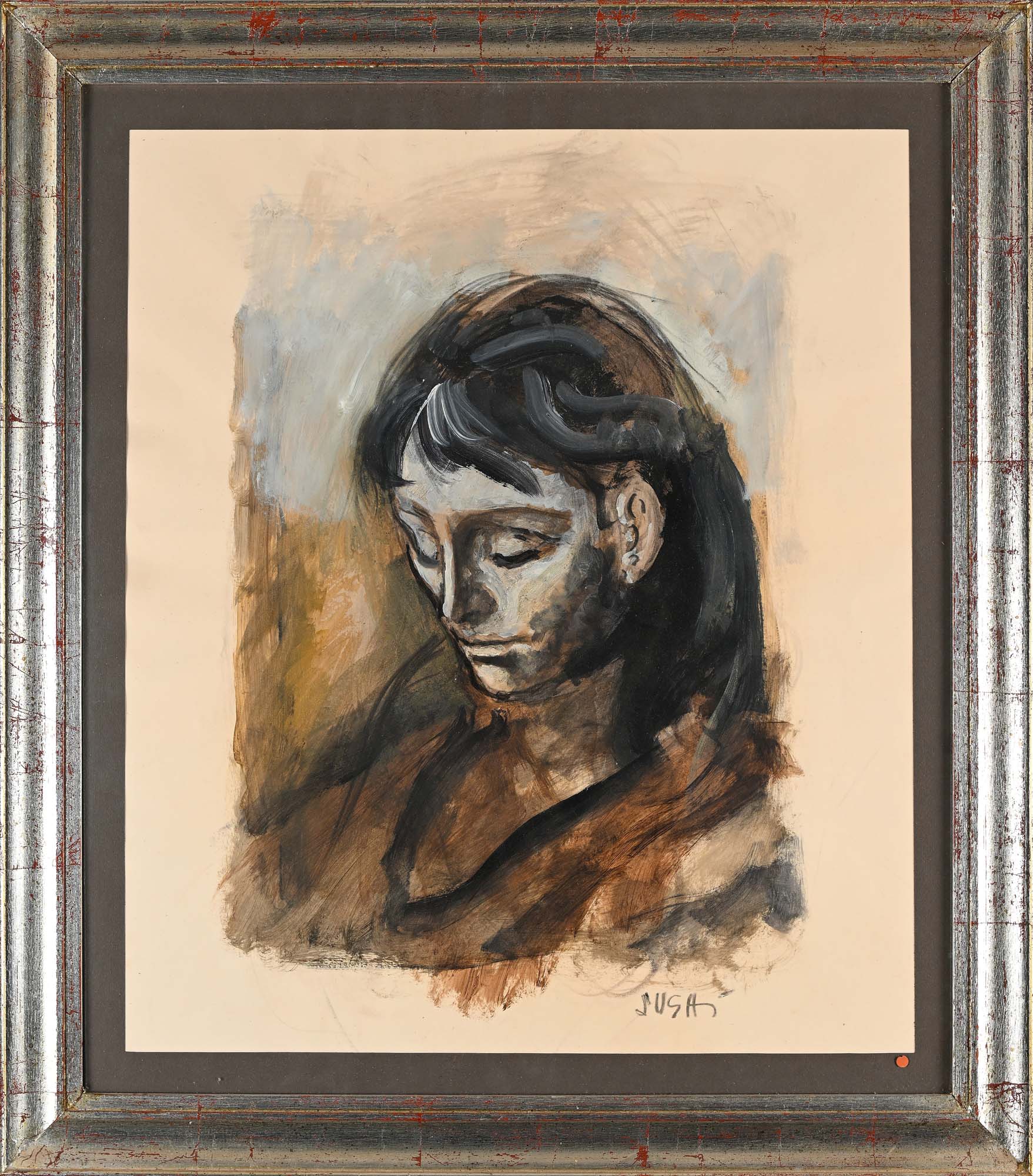 Alberto Sughi Ritratto di fanciulla Olio su carta cm 63x54 - in cornice cm 80x70 Firma in basso a destra "Sughi".